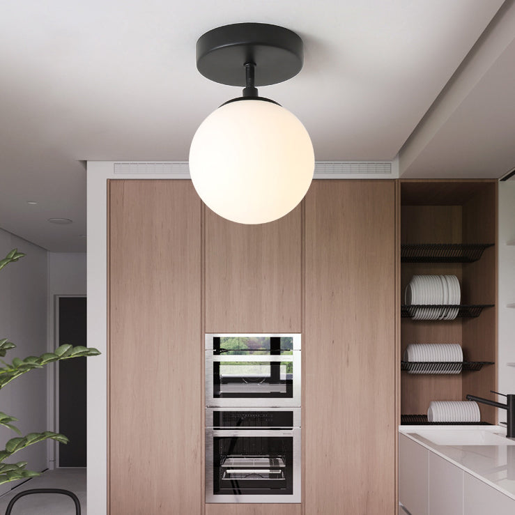 Modern Minimalist Iron Glass Globe 1-Light Semi-Flush Mount Ceiling Light For Living Room