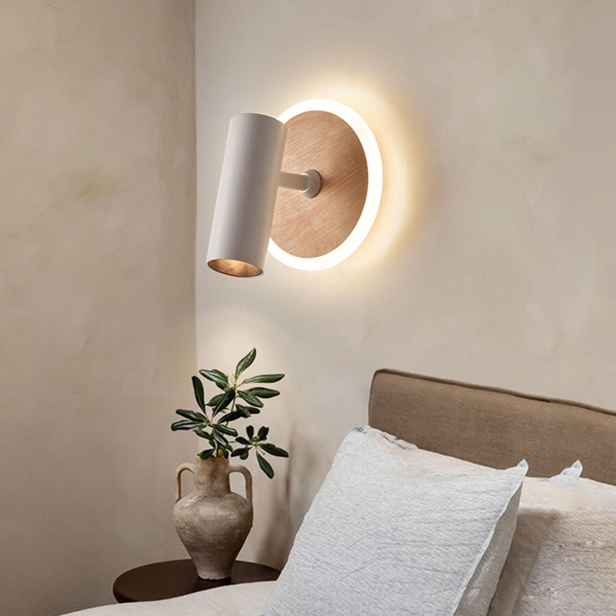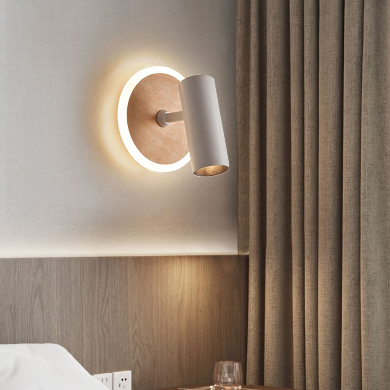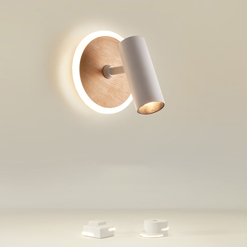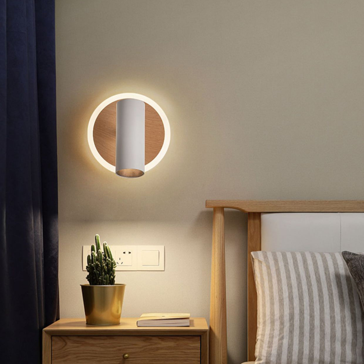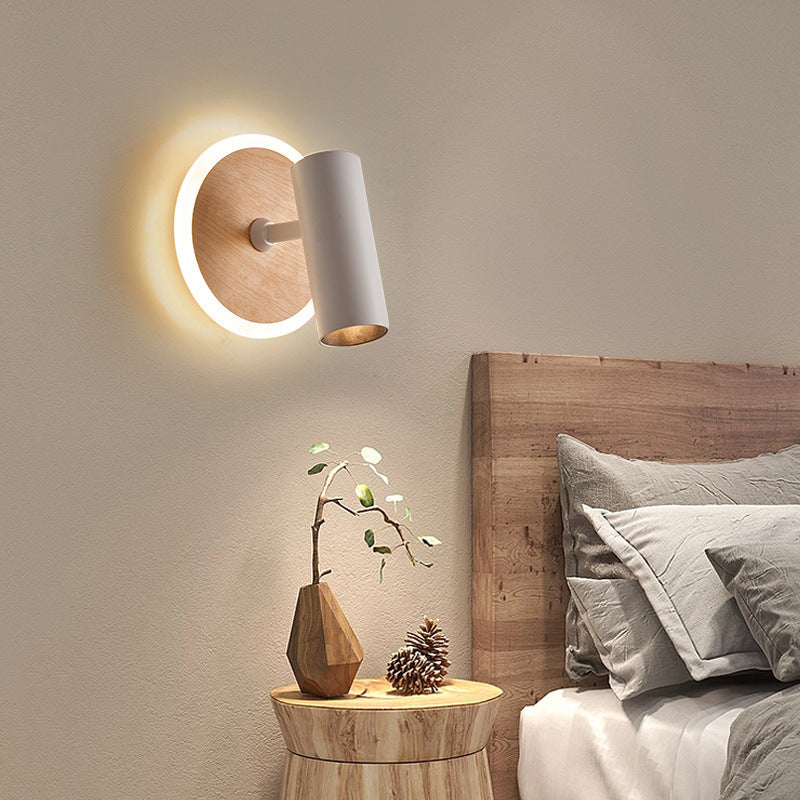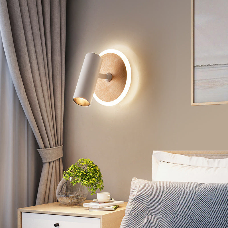 Modern Minimalist Iron Imitation Wood Grain Acrylic LED Spotlight Wall Sconce Lamp For Bedroom