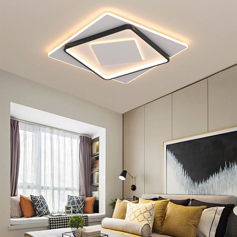 Modern Minimalist Iron Round & Square LED Flush Mount Ceiling Light For Bedroom And Living Room