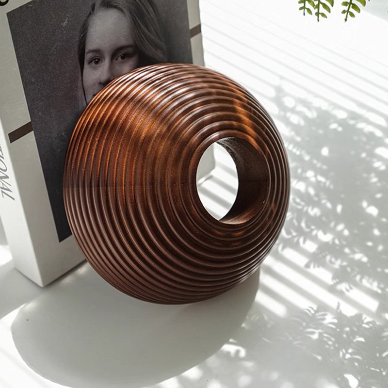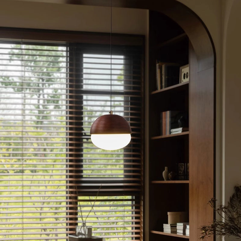 Modern Minimalist Liftable Nut-Shaped Iron Ash Wood Glass 1-Light Pendant Light For Bedroom