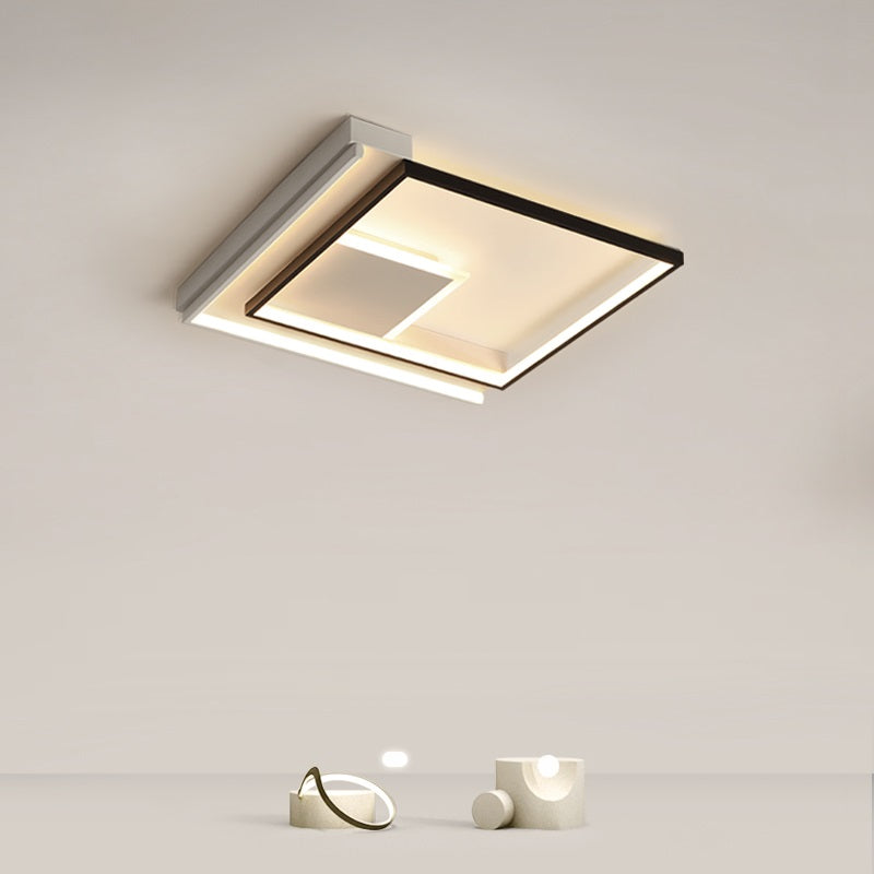 Modern Minimalist Lines Square Aluminum Frame PVC LED Flush Mount Ceiling Light For Living Room