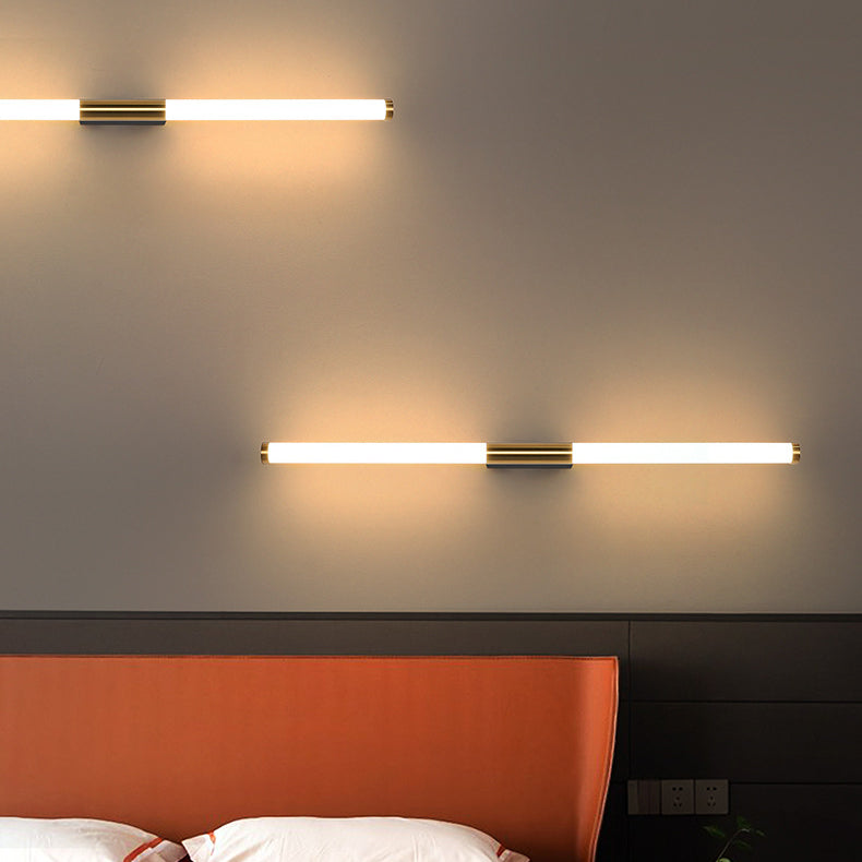 Modern Minimalist Long Cylinder Rectangle Base Iron PC LED Wall Sconce Lamp For Bedroom