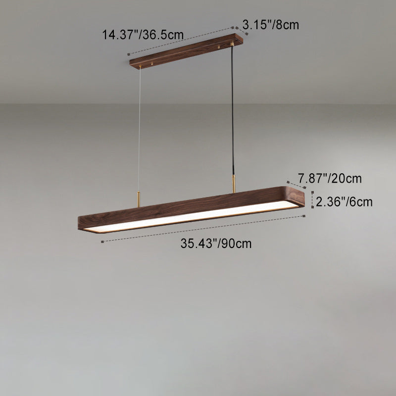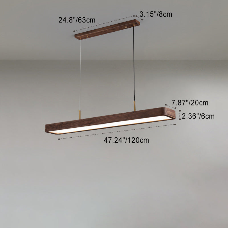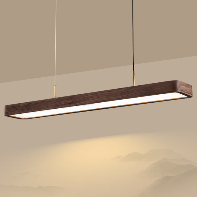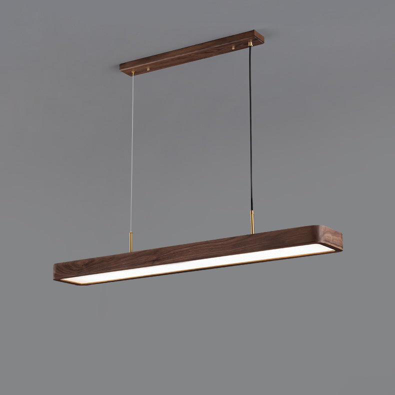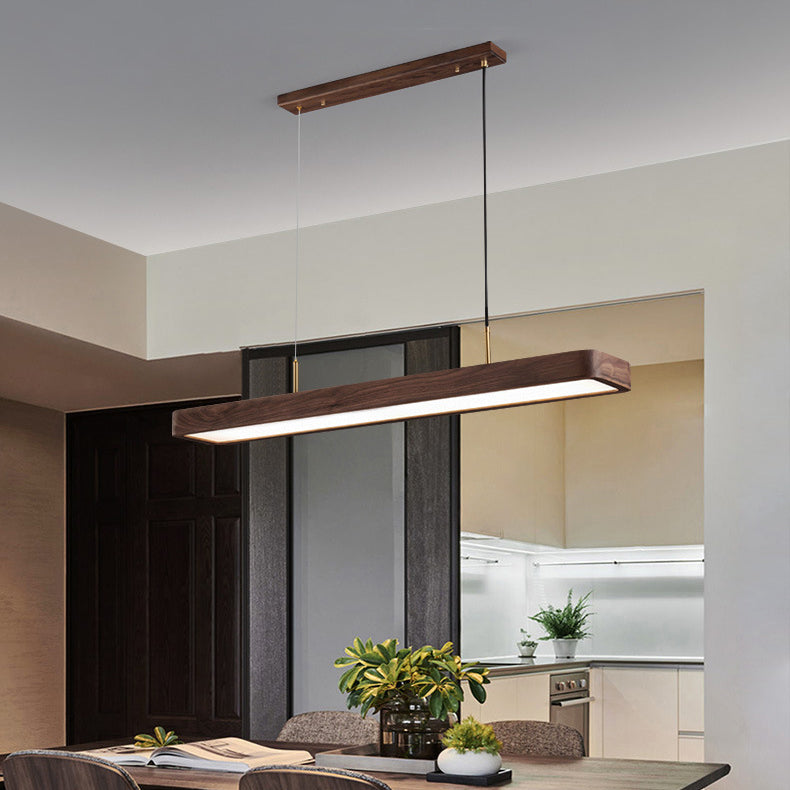 Modern Minimalist Long Rectangle Acrylic Walnut LED Chandelier Island Light For Dining Room