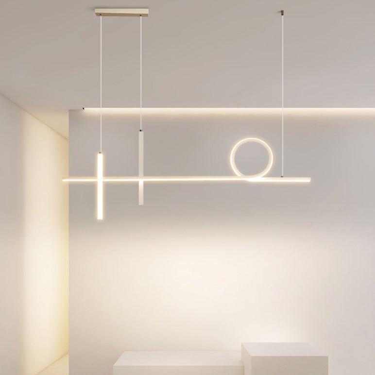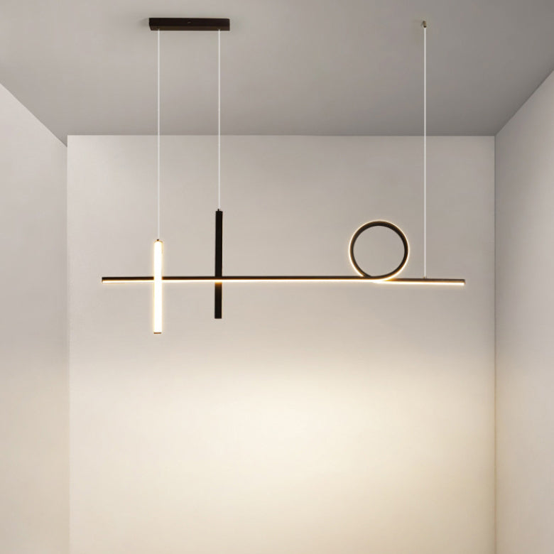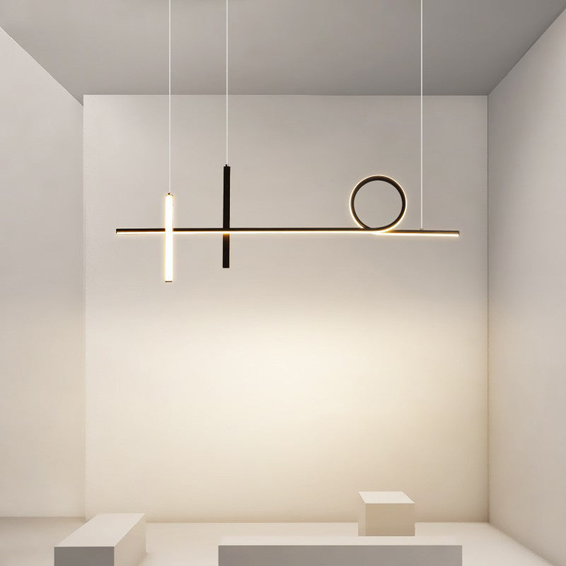Modern Minimalist Long Strip Circle Acrylic Aluminum Iron LED Chandelier Island Light For Dining Room