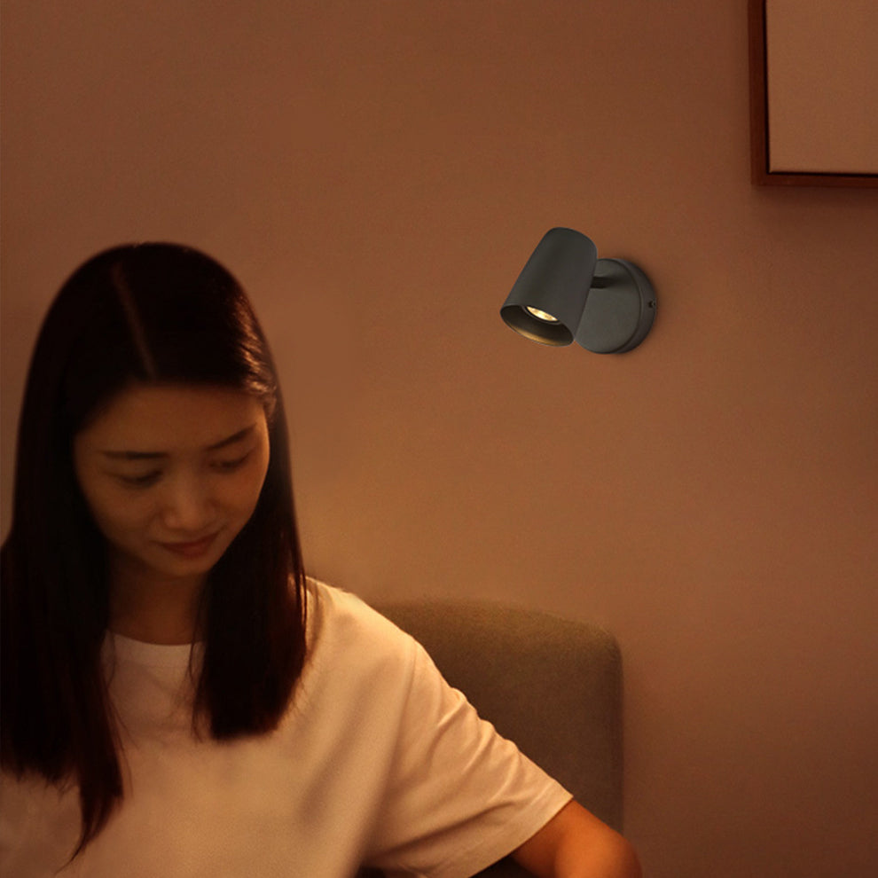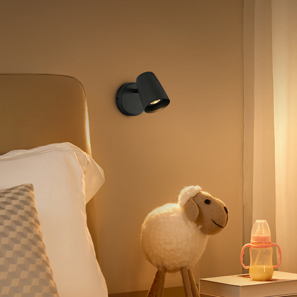 Modern Minimalist Metal Cylinder Rotatable 1-Light Wall Sconce Lamp For Bedside