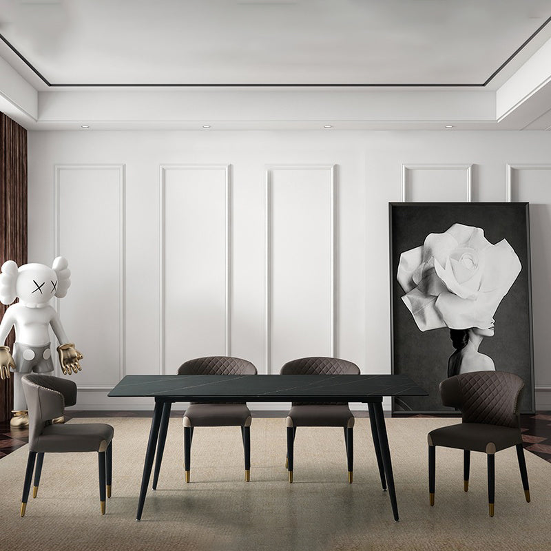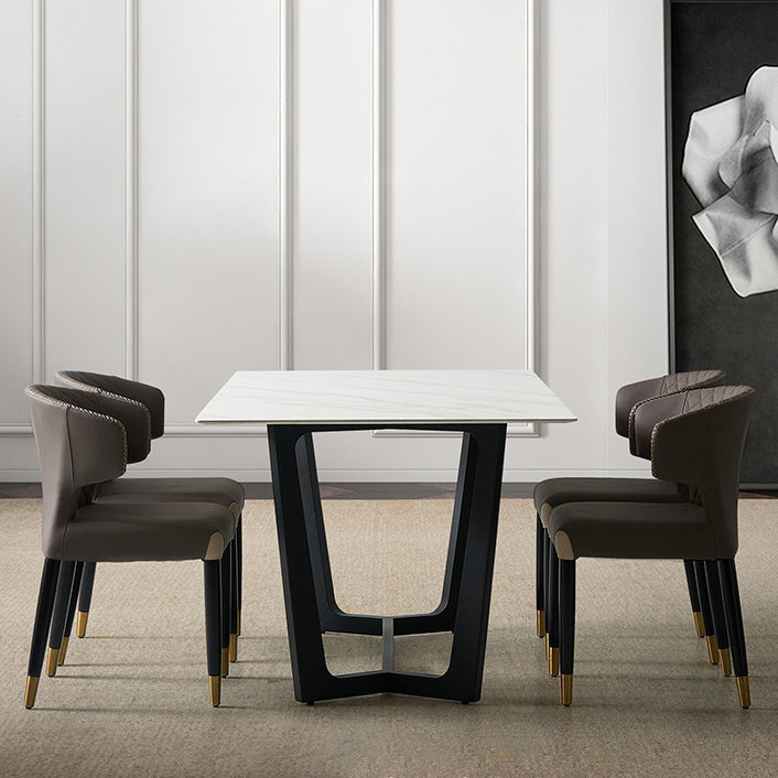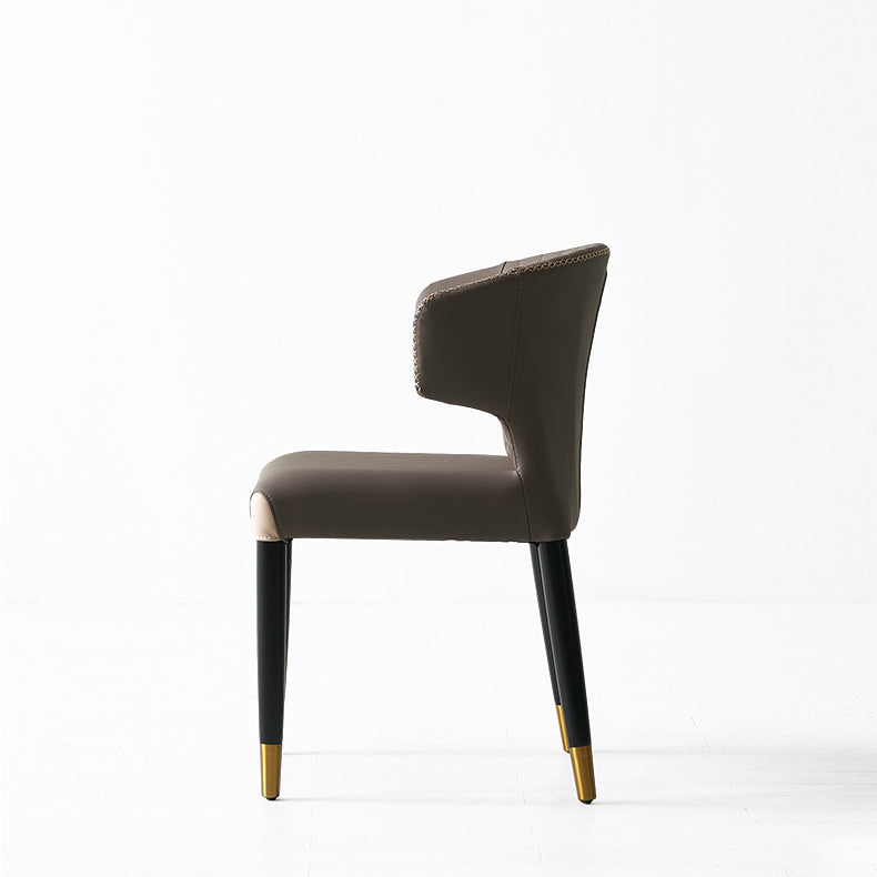 Modern Minimalist Microfiber Skin Wood Carbon Steel Sponge Square Arc Dining Chair Backrest For Dining Room