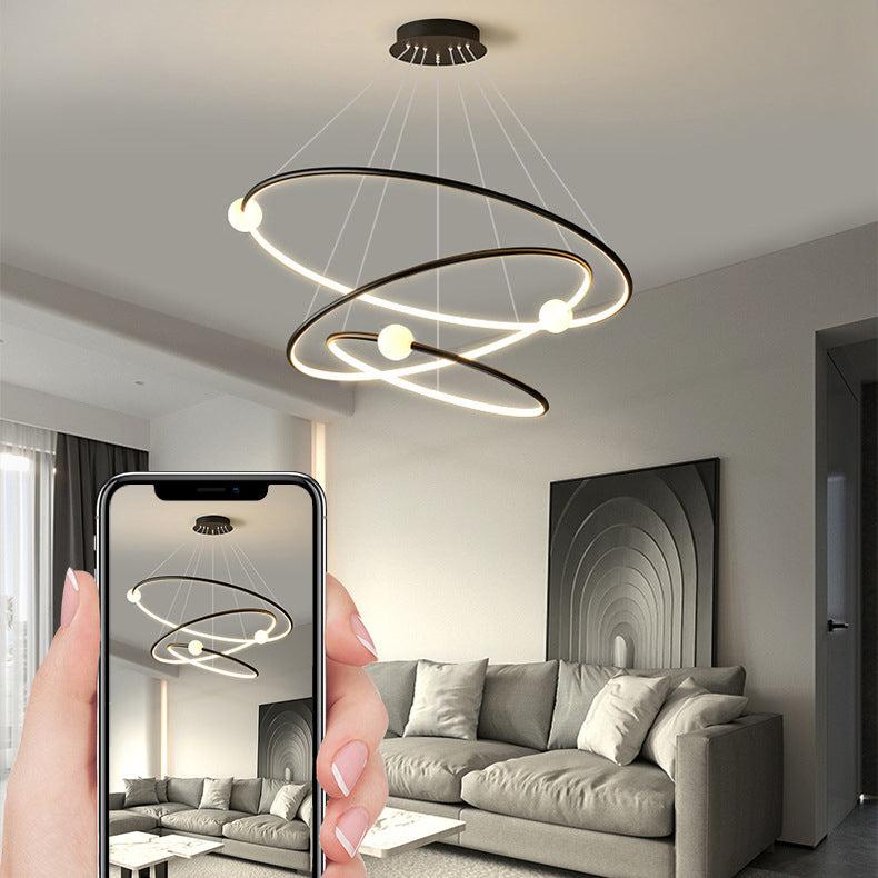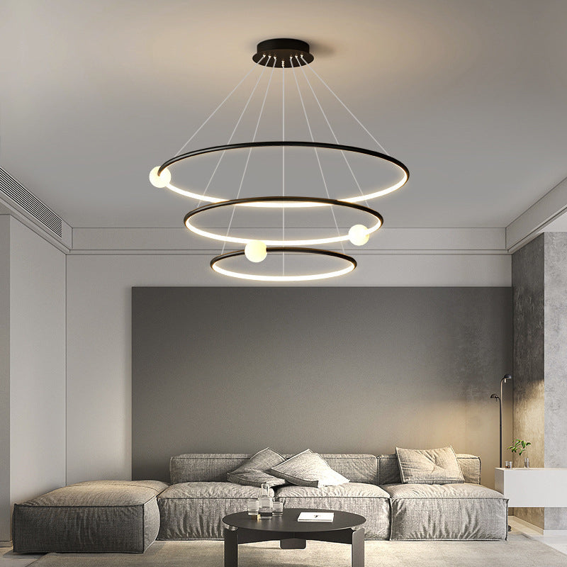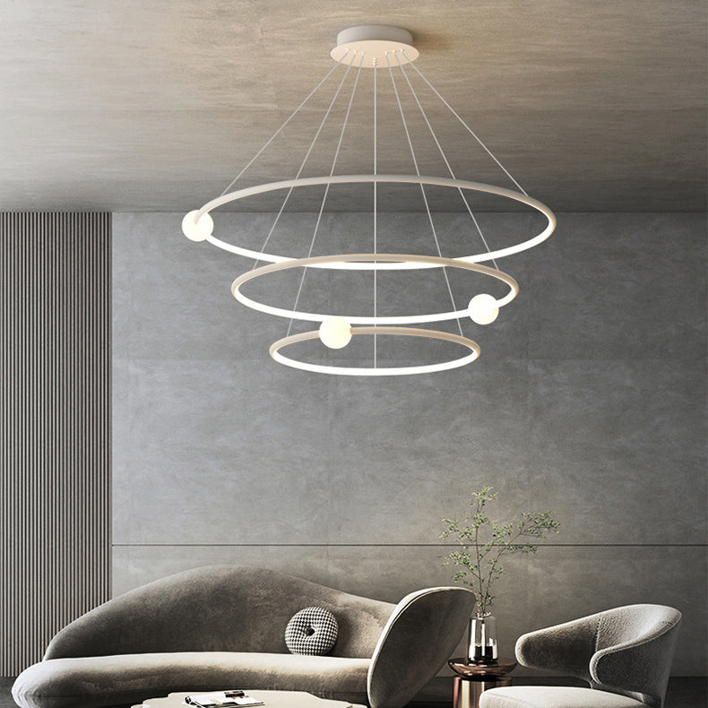 Modern Minimalist Multi Tier Circle Aluminum Iron Silicone LED Chandelier For Living Room
