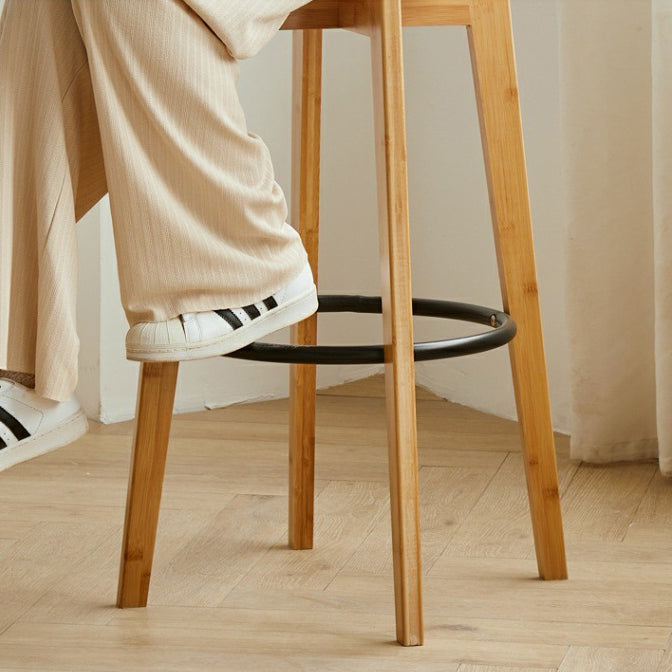 Modern Minimalist Nan Bamboo Square Bar Stool Backrest Armless Footrest For Dining Room