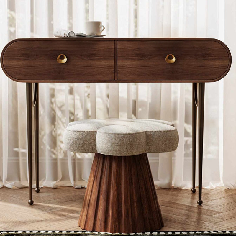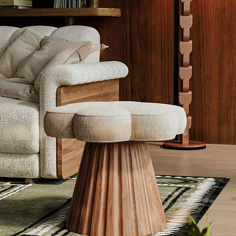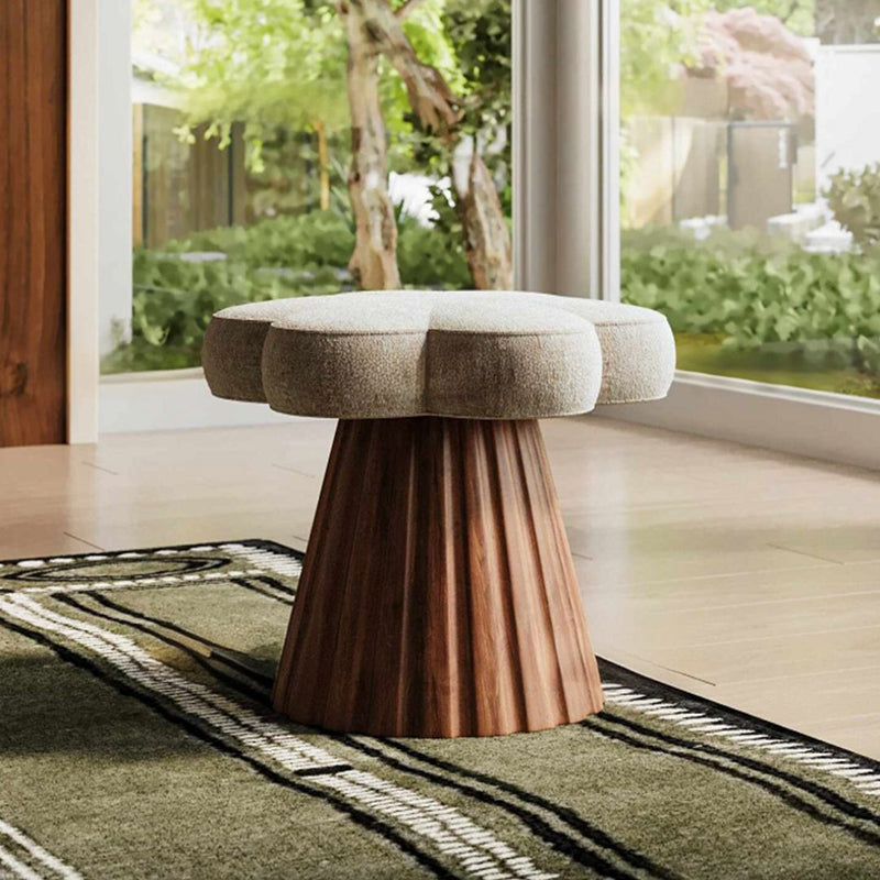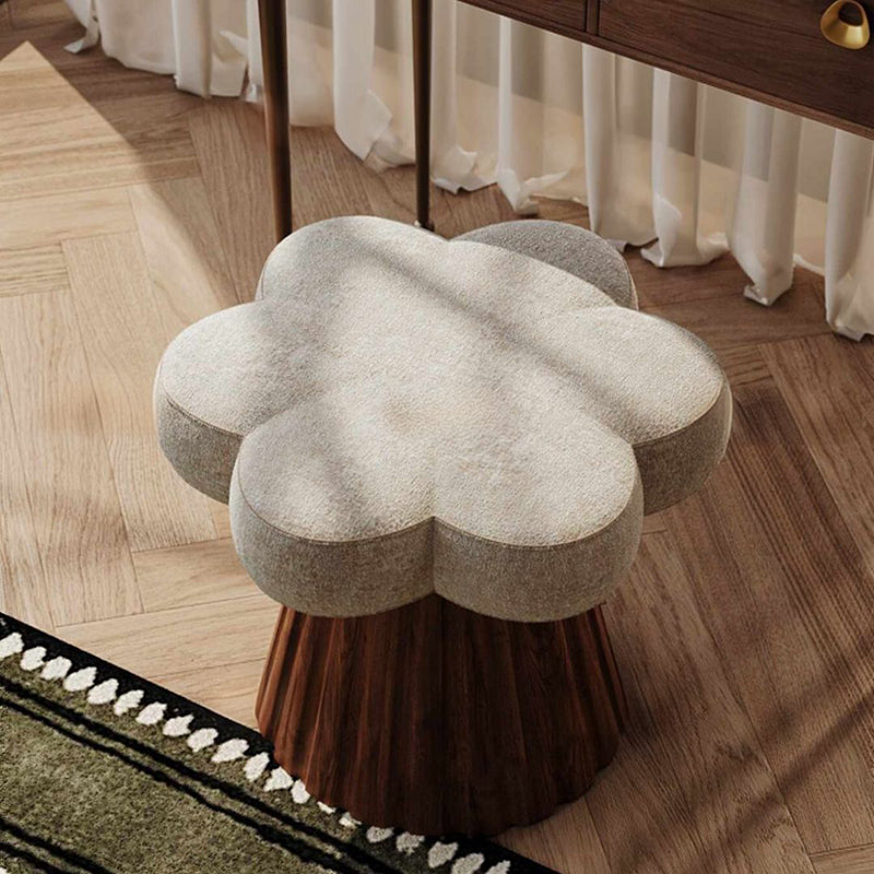 Modern Minimalist Petal-Shaped Solid Wood Chenille Upholstery Sponge Cushion Vanity Stool For Bedroom