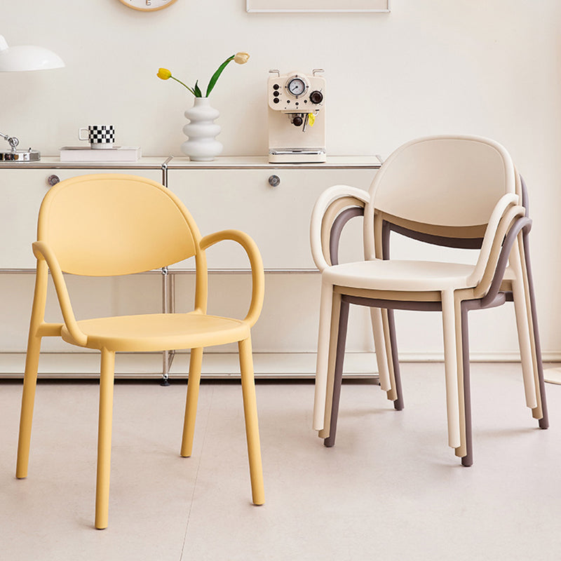 Modern Minimalist PP Plastic Round Curved Dining Chair Backrest Armrests For Dining Room