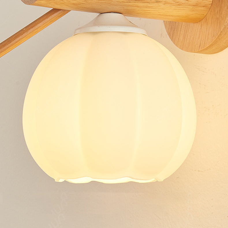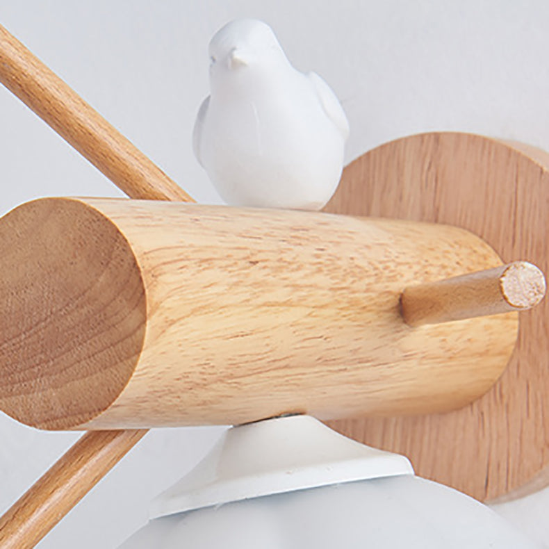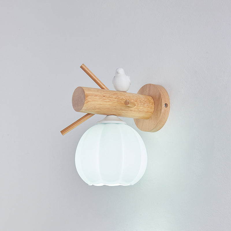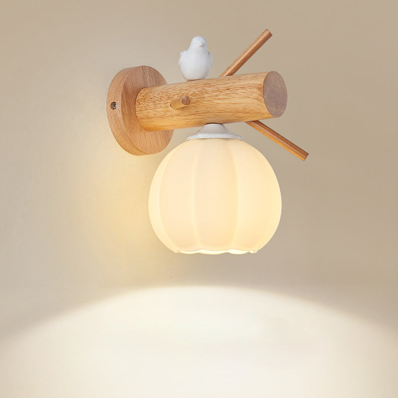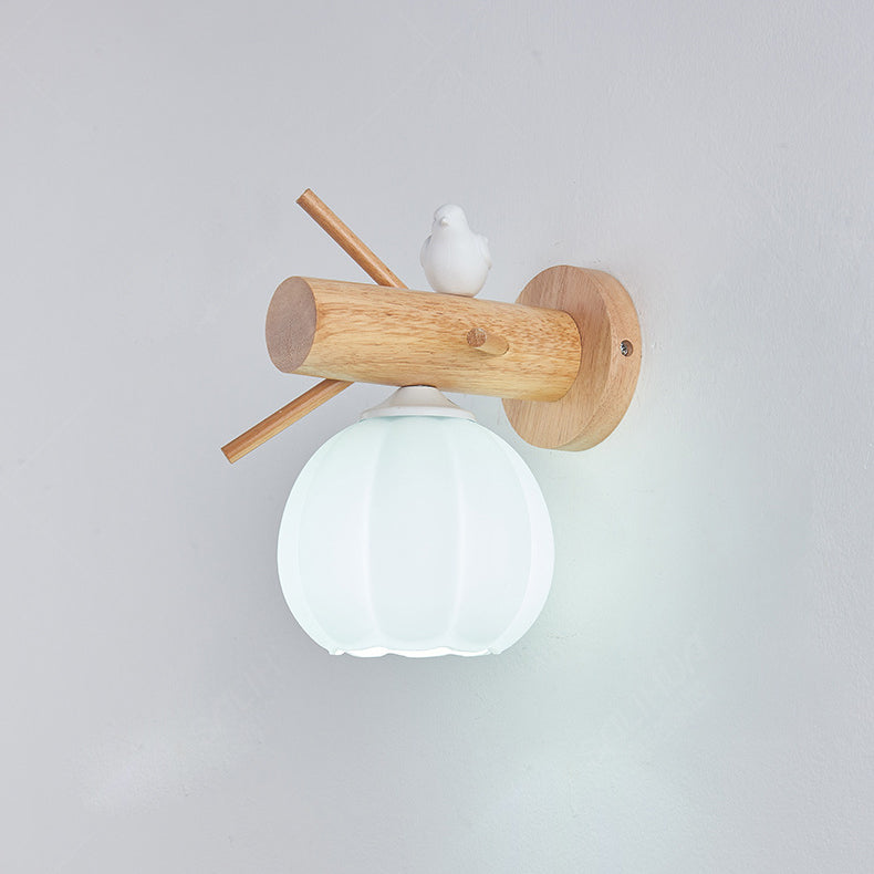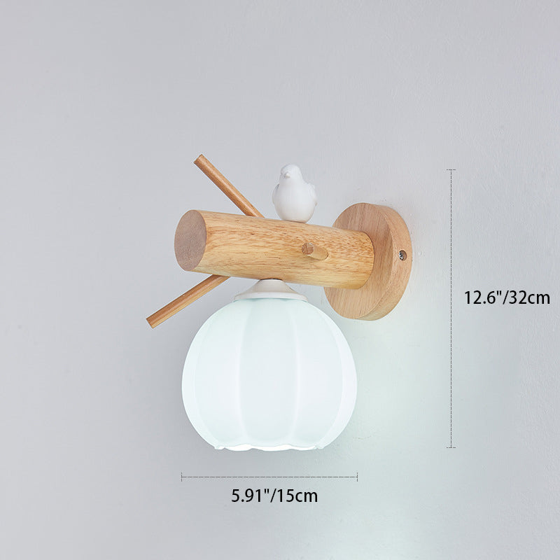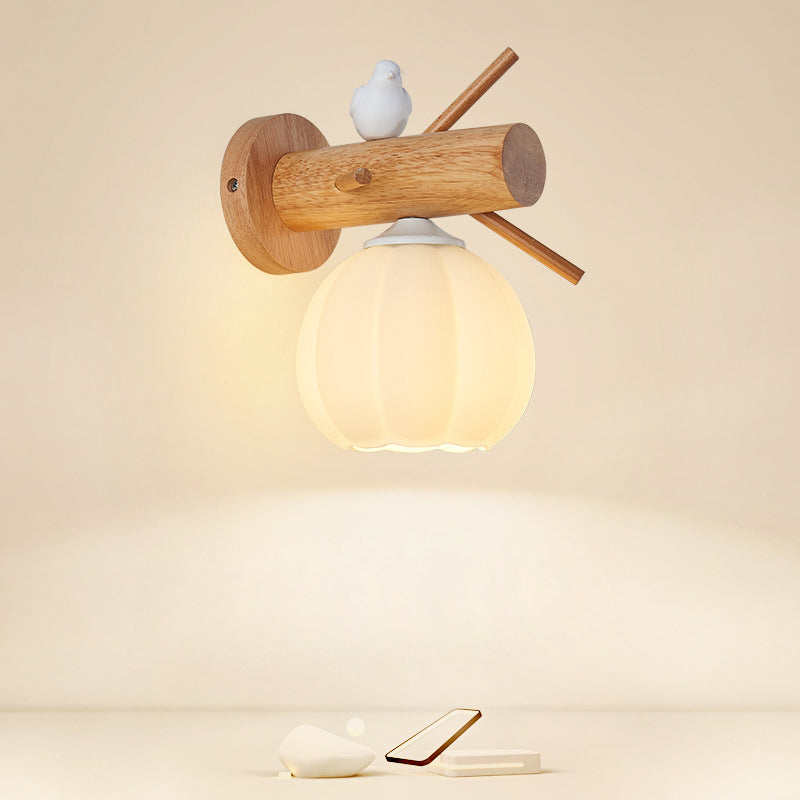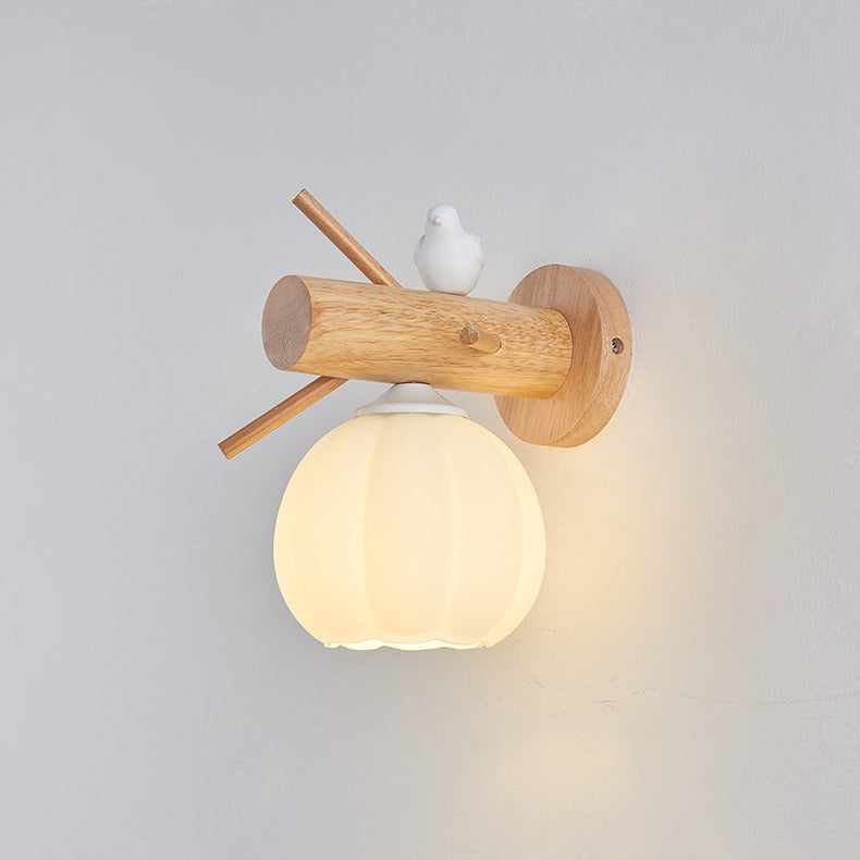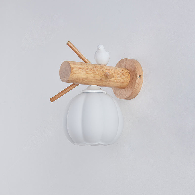 Modern Minimalist Pumpkin Bird Wood PE 1-Light Wall Sconce Lamp For Bedroom