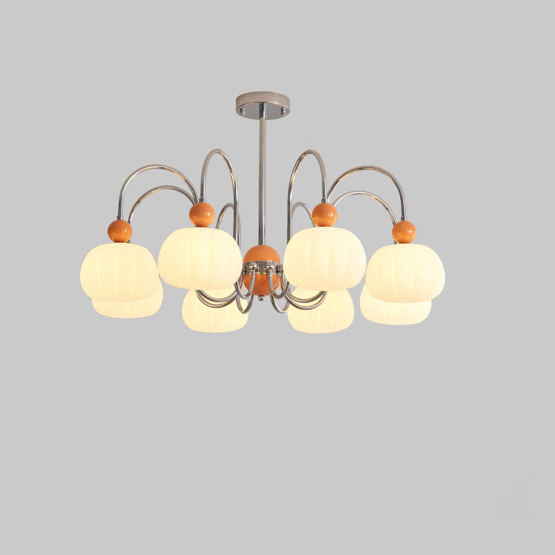 Modern Minimalist Pumpkin Branch Orb Iron PE 8-Light Chandelier For Bedroom