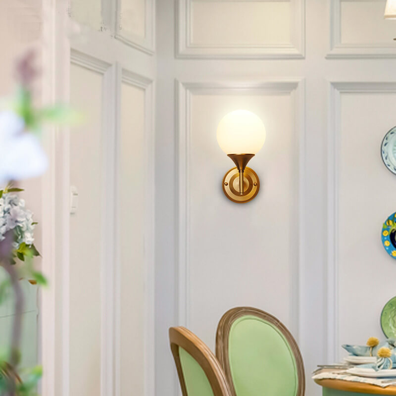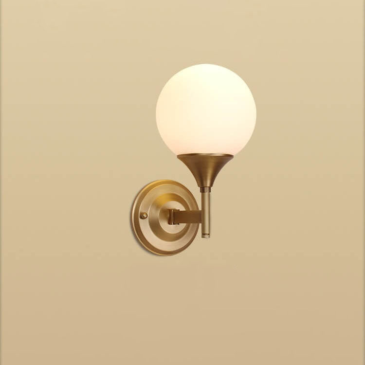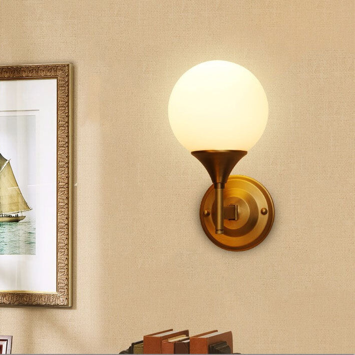 Modern Minimalist Pure Gold White Orb Copper Frosted Glass 1-Light Wall Sconce Lamp