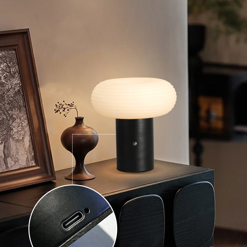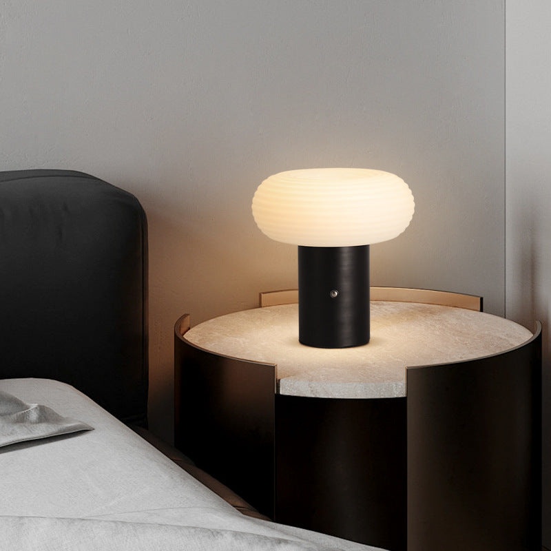 Modern Minimalist Rechargeable Cylinder Base Oval PE Aluminum LED Table Lamp For Bedroom
