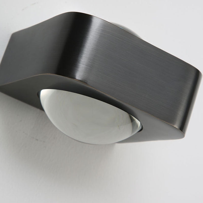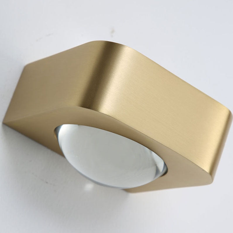 Modern Minimalist Rectangle Lens Stainless Steel Copper Glass LED Wall Sconce Lamp For Living Room