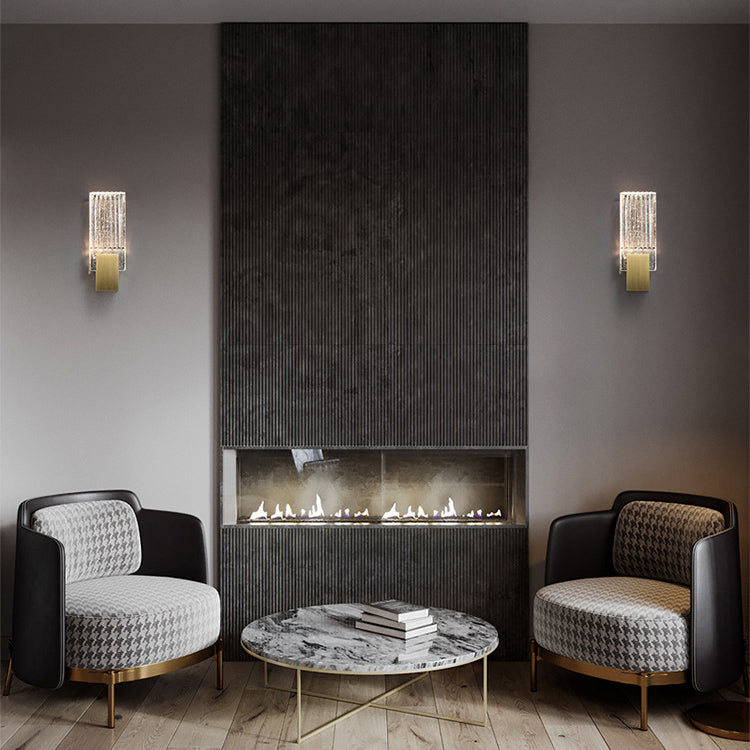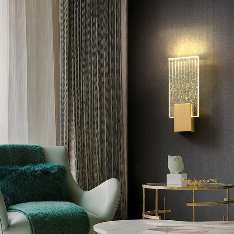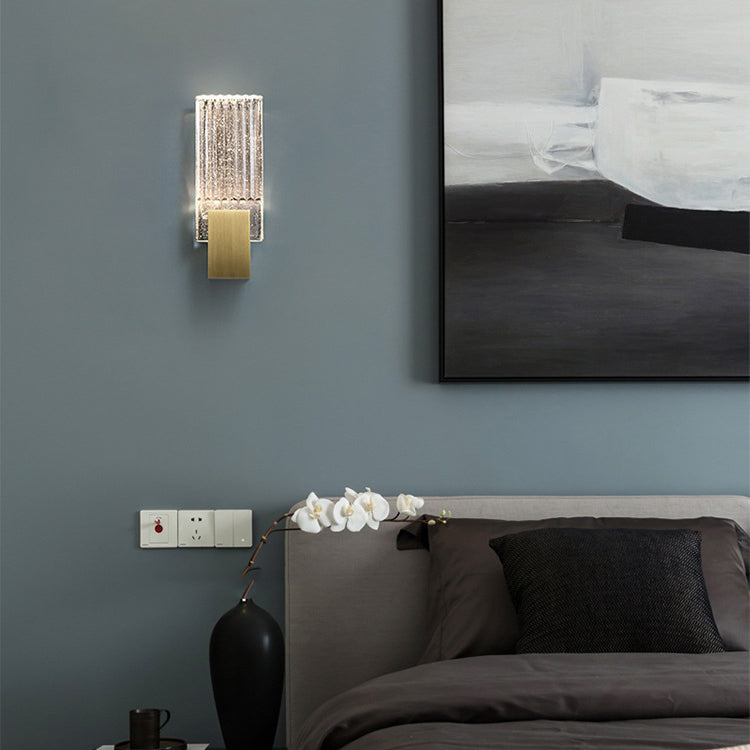 Modern Minimalist Rectangular Copper Crystal LED Wall Sconce Lamp For Living Room