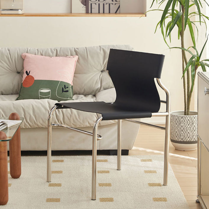 Modern Minimalist Rectangular Genuine Leather Iron Frame Dining Chair For Dining Room