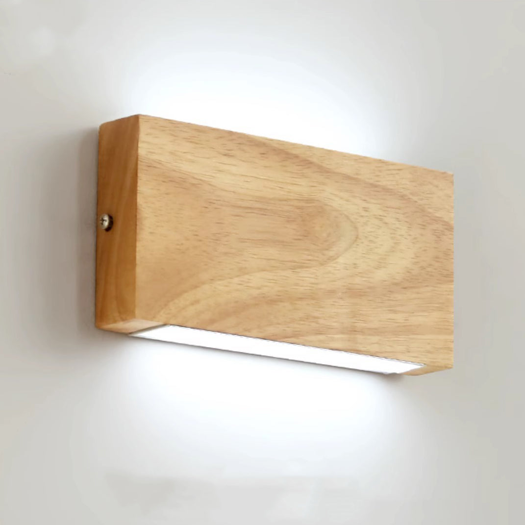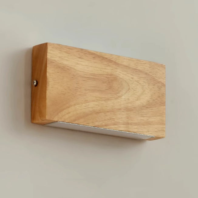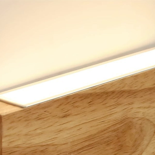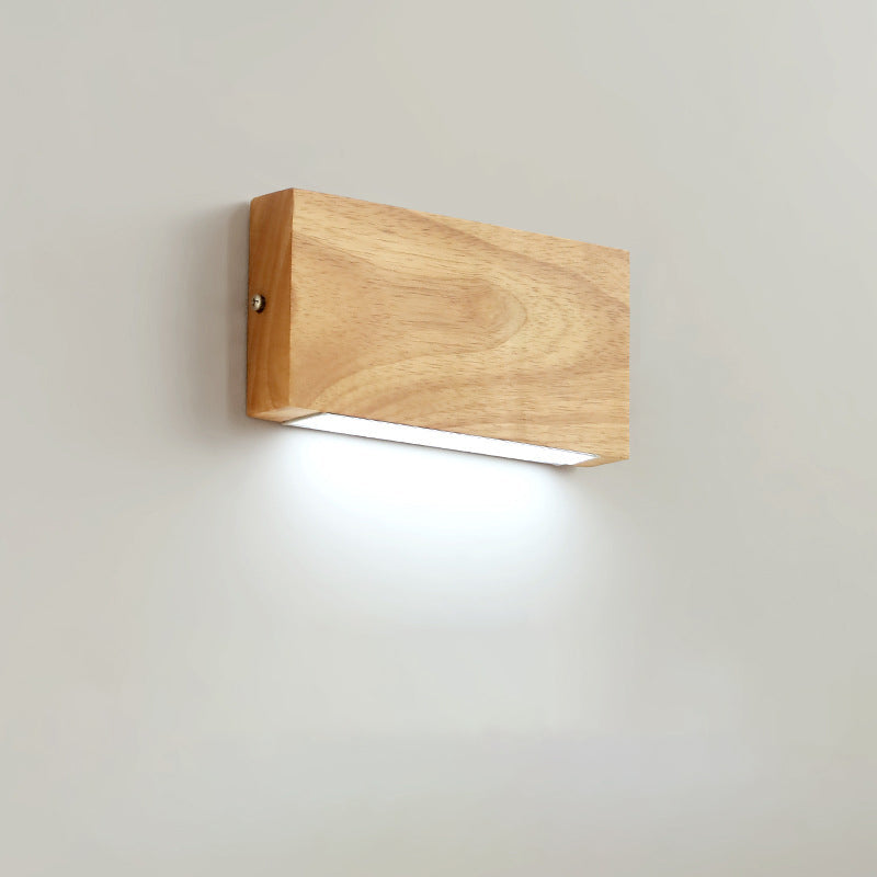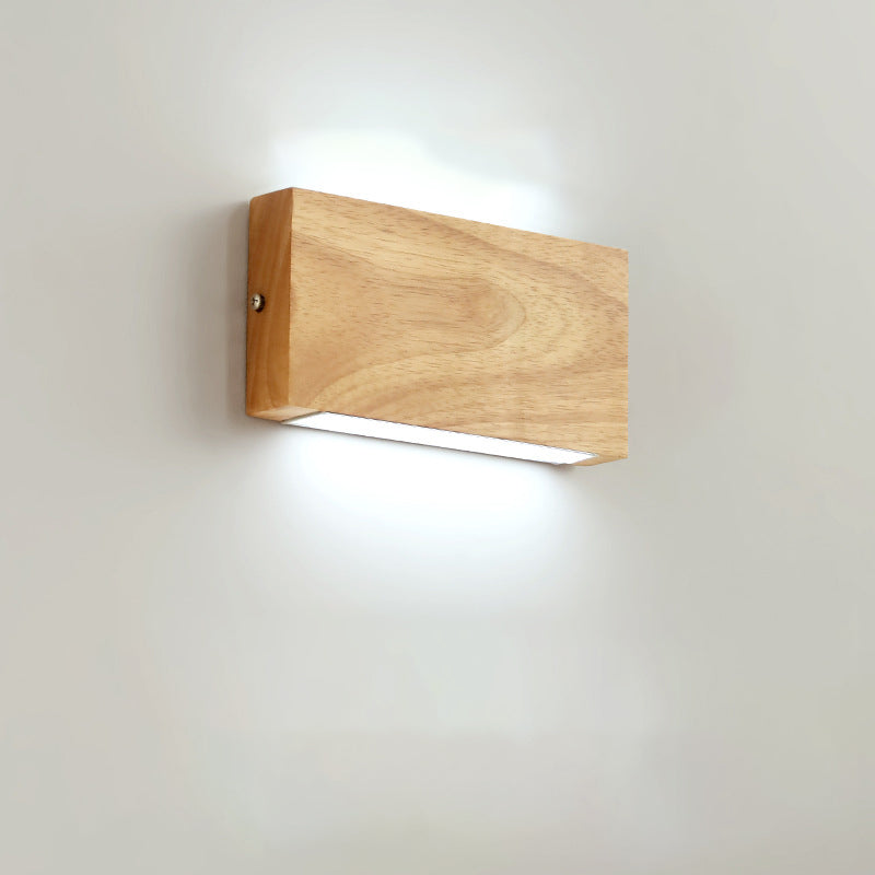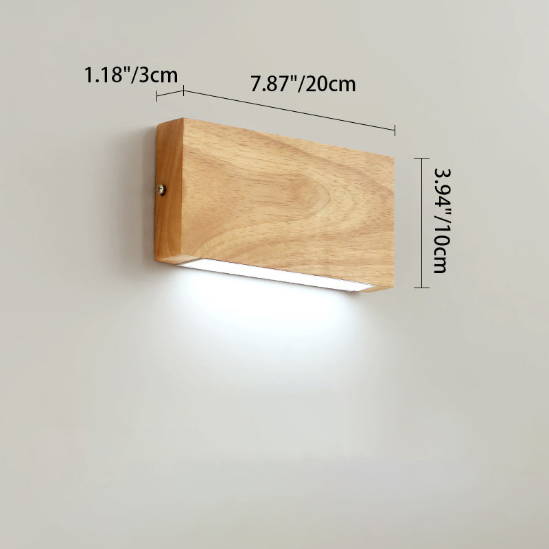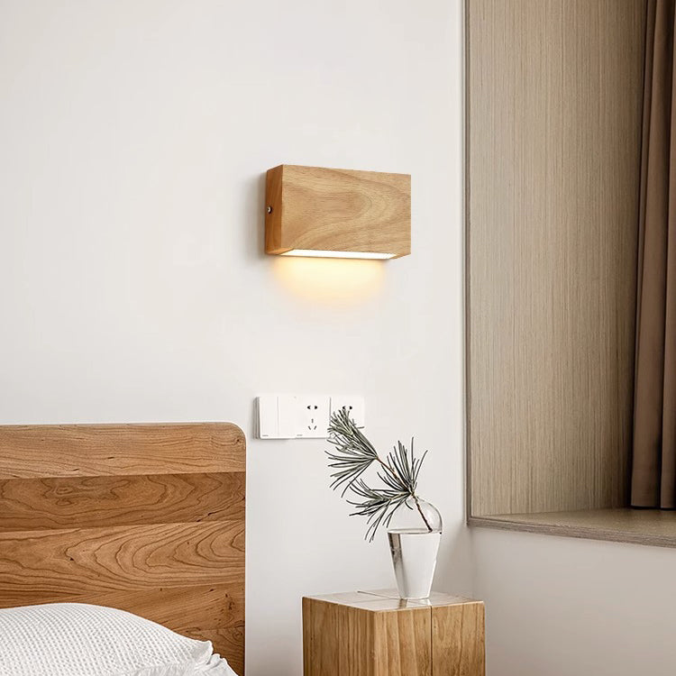 Modern Minimalist Rectangular Rubber Wood Acrylic LED Wall Sconce Lamp For Bedroom
