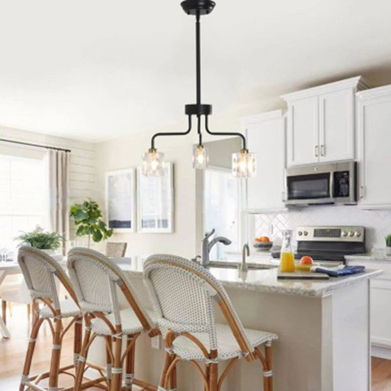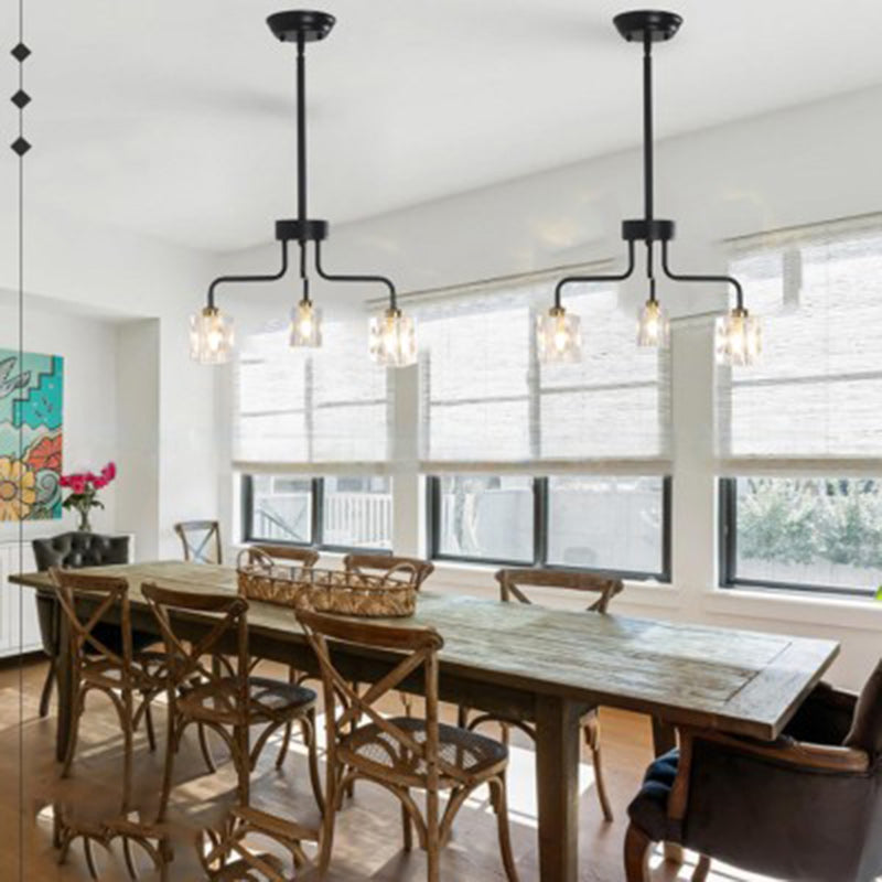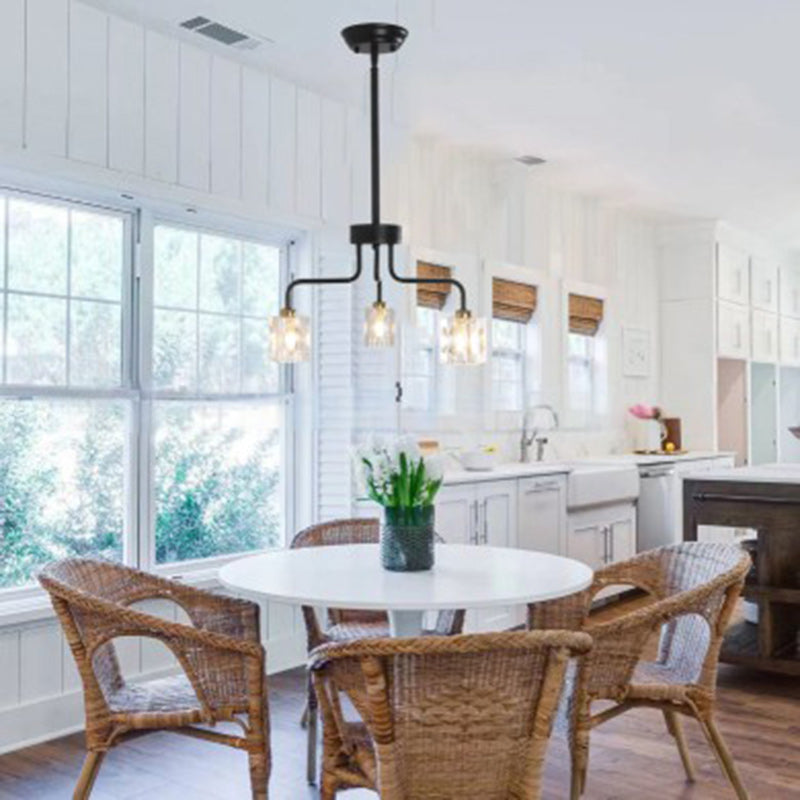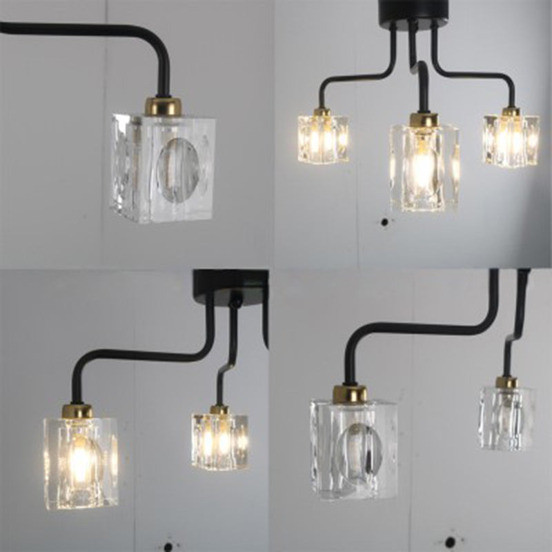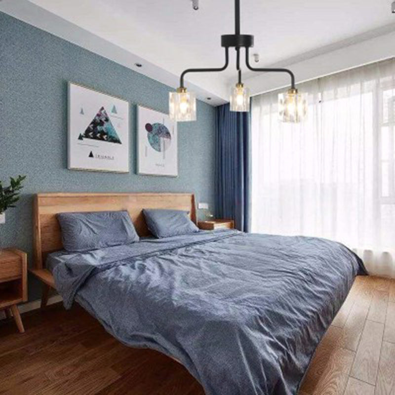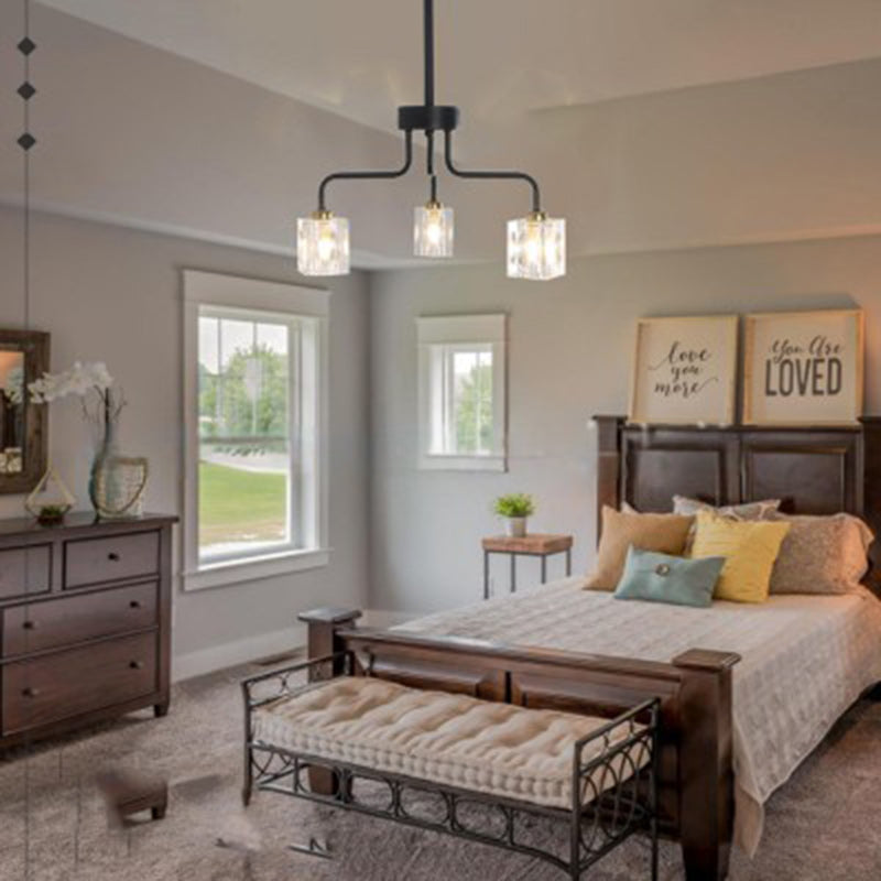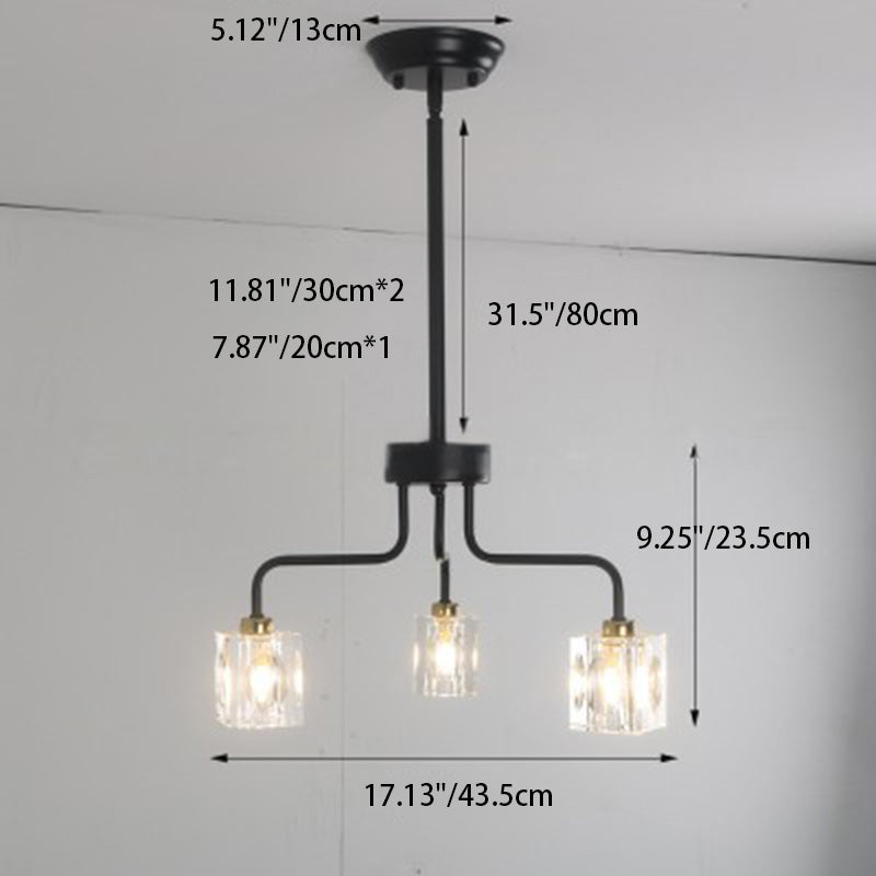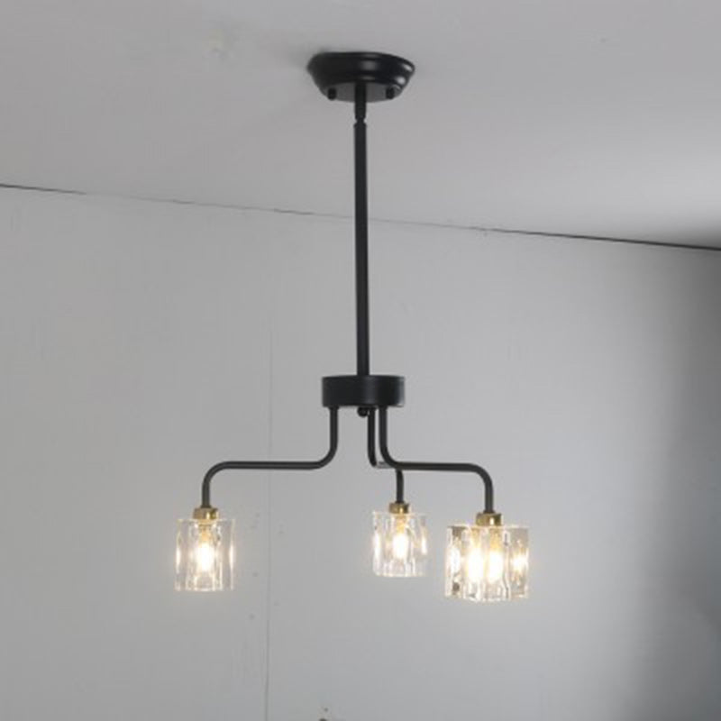 Modern Minimalist Rectangular Shade Branch Iron Crystal 3-Light Chandelier For Living Room