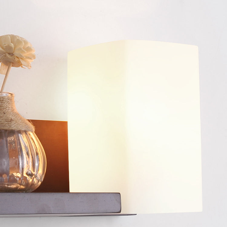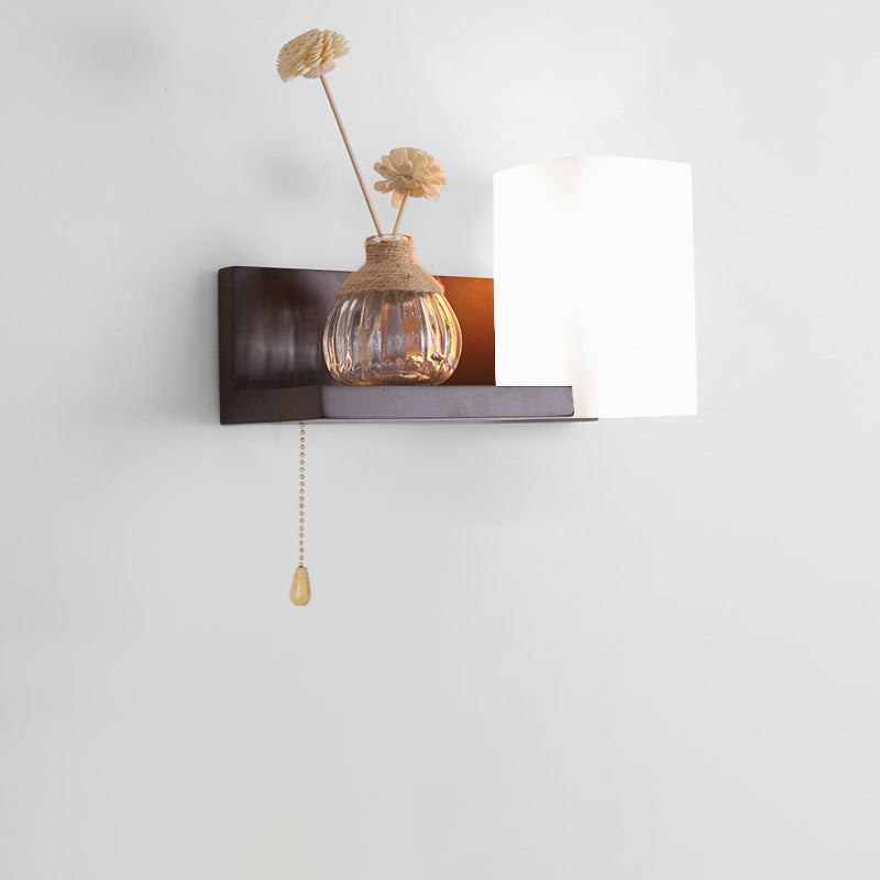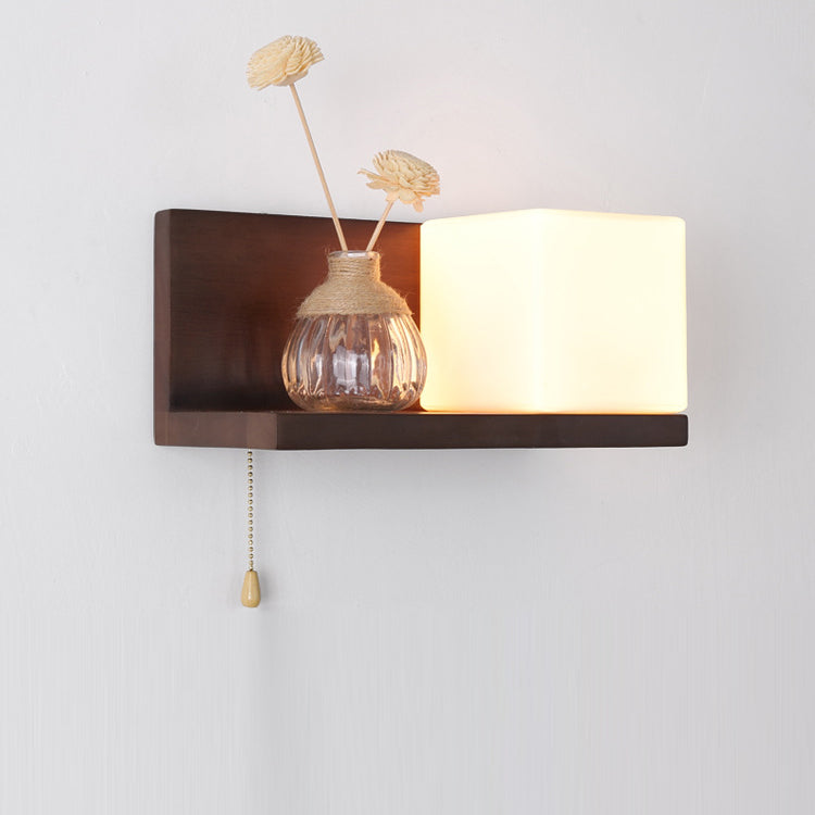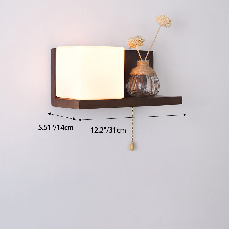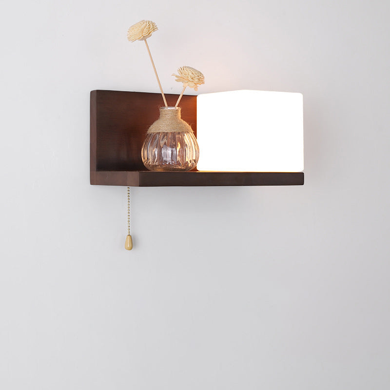 Modern Minimalist Rectangular Square Shelf Wood Glass 1-Light Wall Sconce Lamp For Bedroom