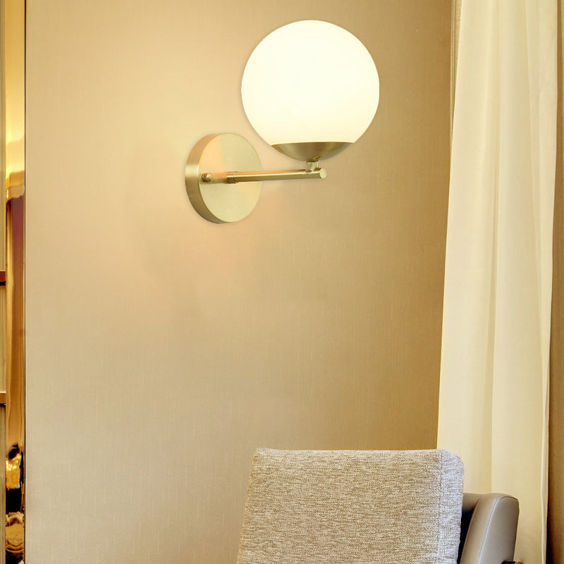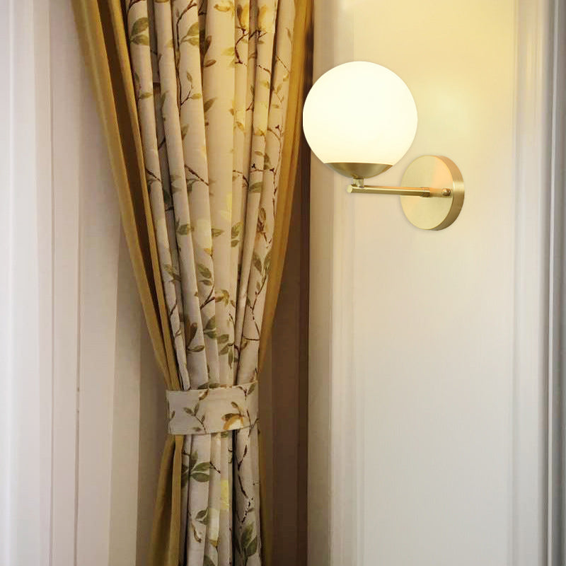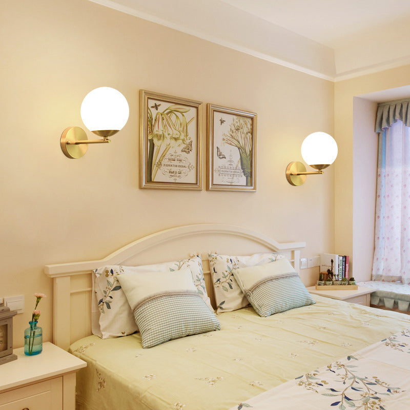 Modern Minimalist Round Ball Copper Glass 1-Light Wall Sconce Lamp For Living Room