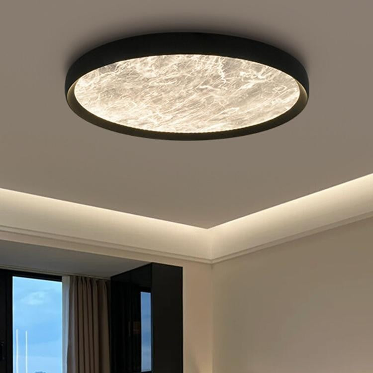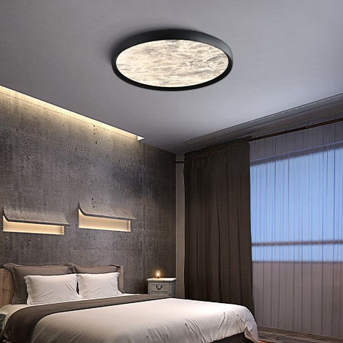 Modern Minimalist Round Cloudy Aluminum Frame Acrylic Shade LED Flush Mount Ceiling Light For Bedroom