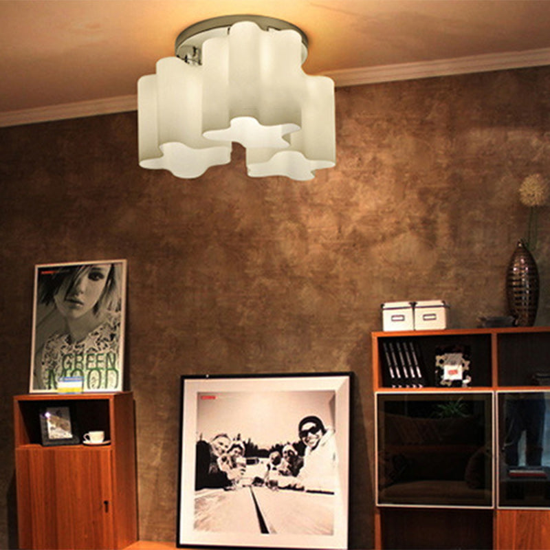 Modern Minimalist Round Column Flower Hardware Glass 1/3/4 Light Semi-Flush Mount Ceiling Light For Living Room