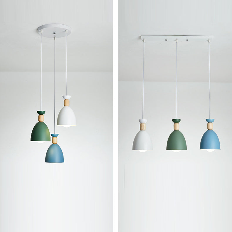Modern Minimalist Round Cone Iron Wood 1/3 Light Island Light Chandelier For Dining Room