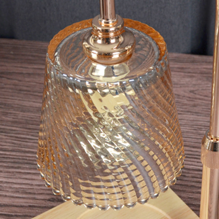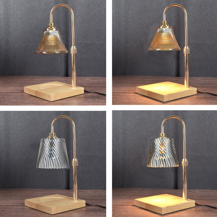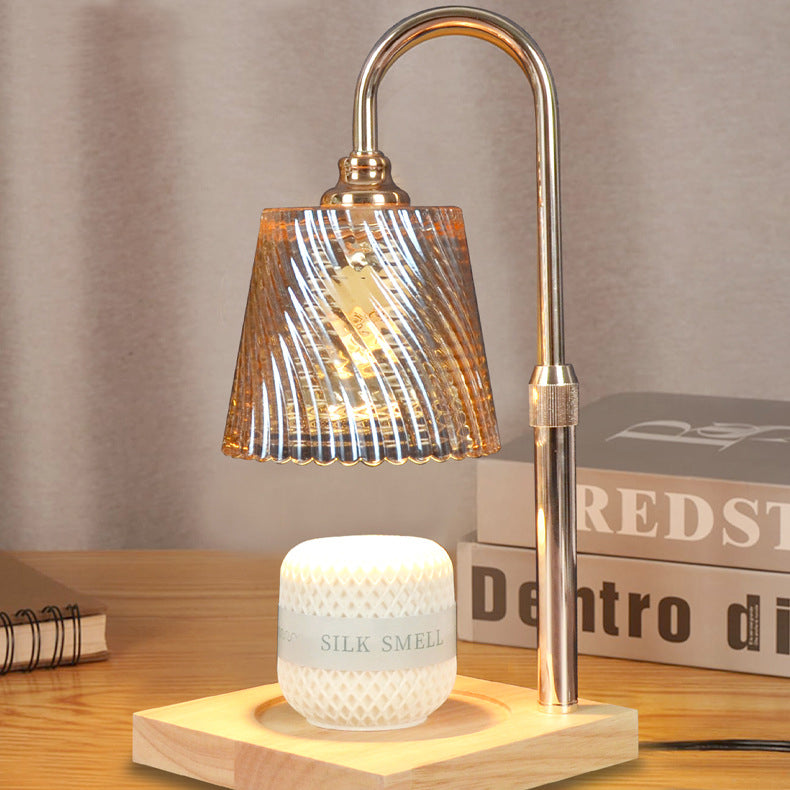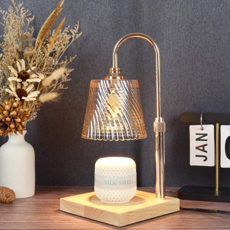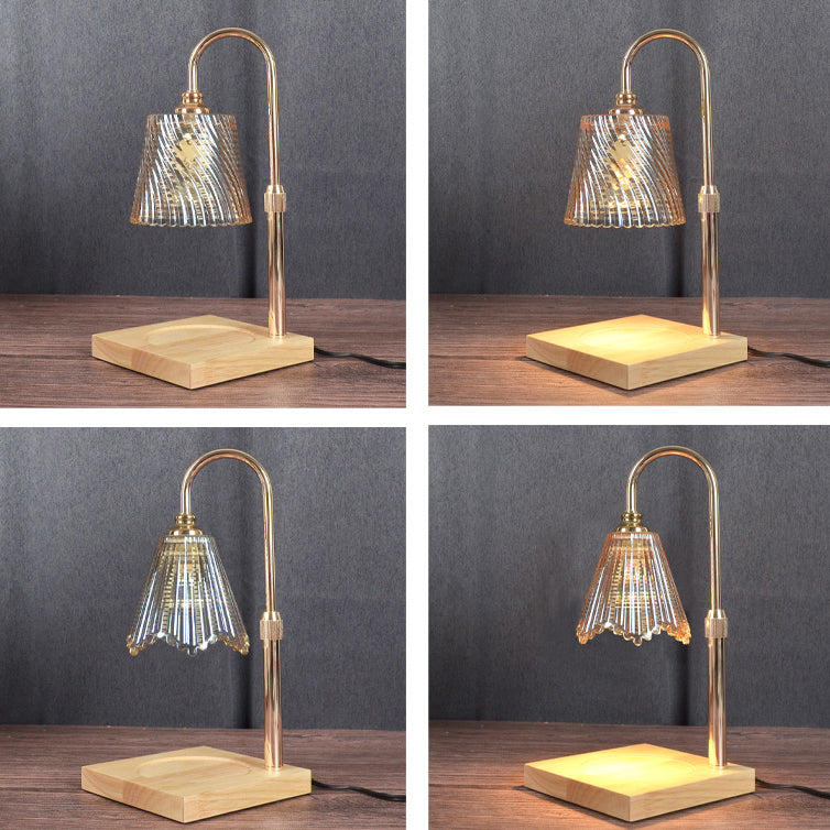 Modern Minimalist Round Cone Trapezoid Iron Wood Glass 1-Light Melting Wax Table Lamp For Bedroom
