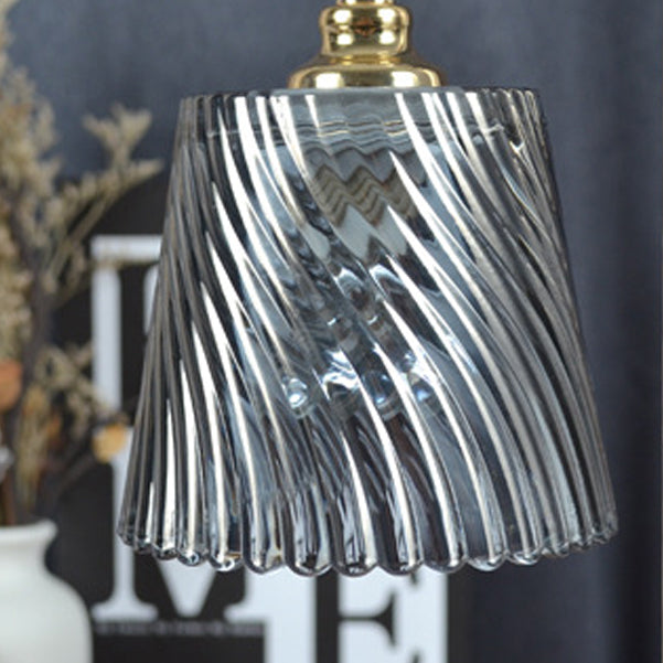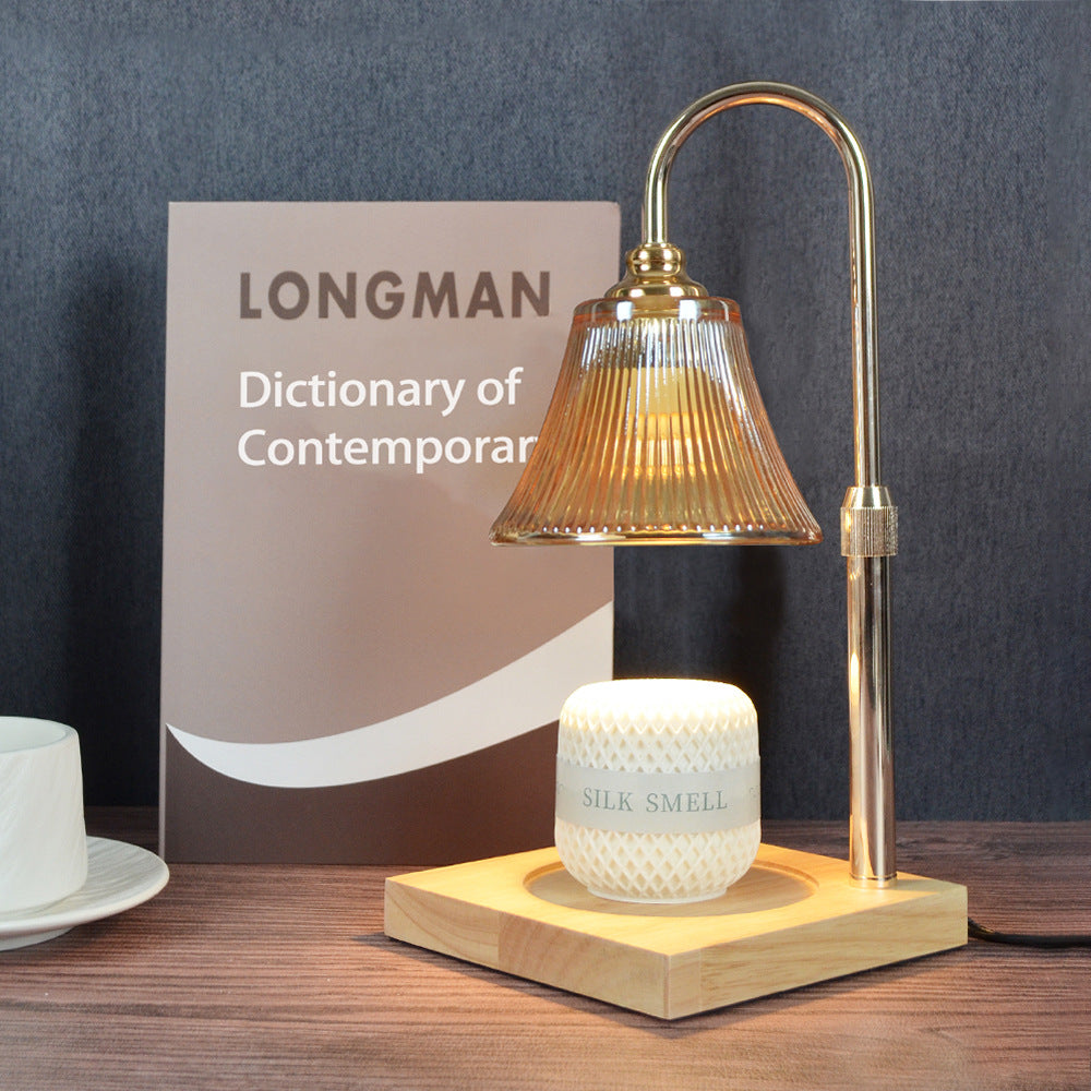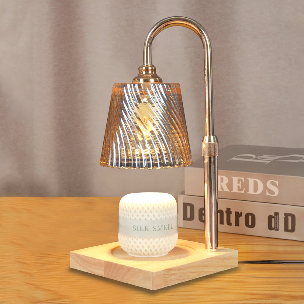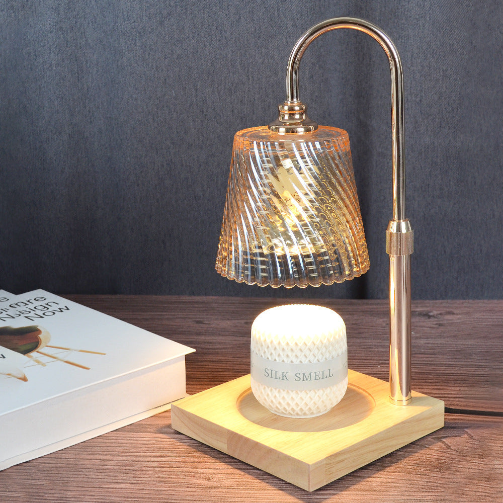 Modern Minimalist Round Cone Trapezoid Iron Wood Glass 1-Light Melting Wax Table Lamp For Bedroom