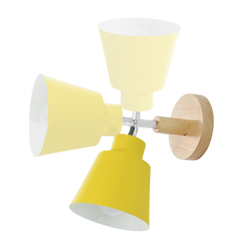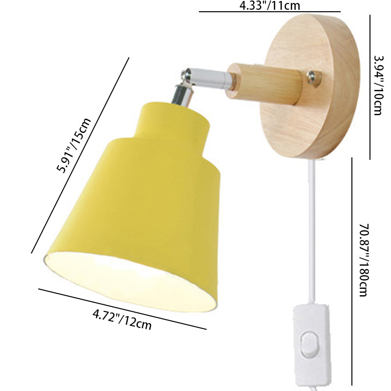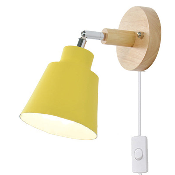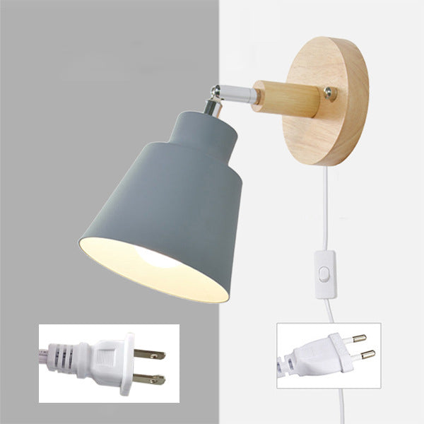 Modern Minimalist Round Cylinder Horn Shape Iron Shade Wood 1-Light Wall Sconce Lamp For Bedroom