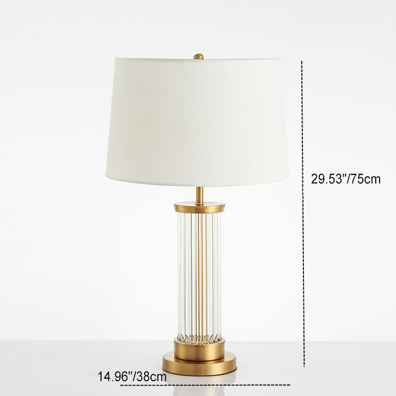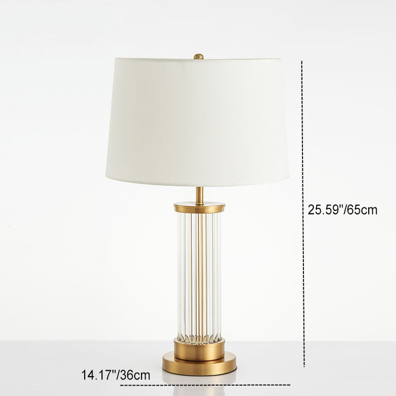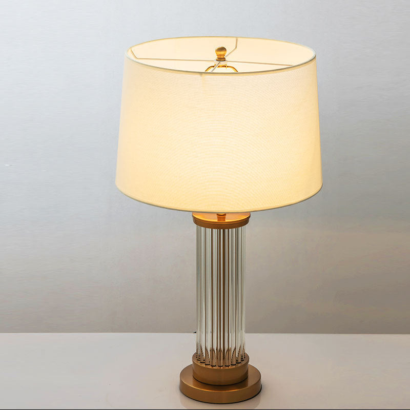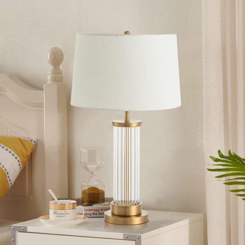Modern Minimalist Round Cylinder Metal Glass Fabric 1-Light Table Lamp For Bedroom