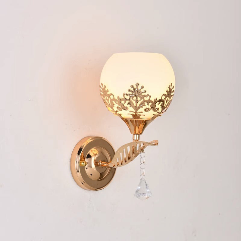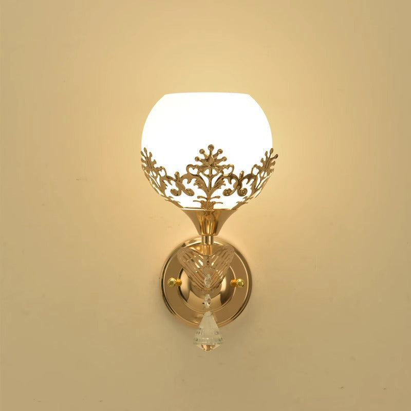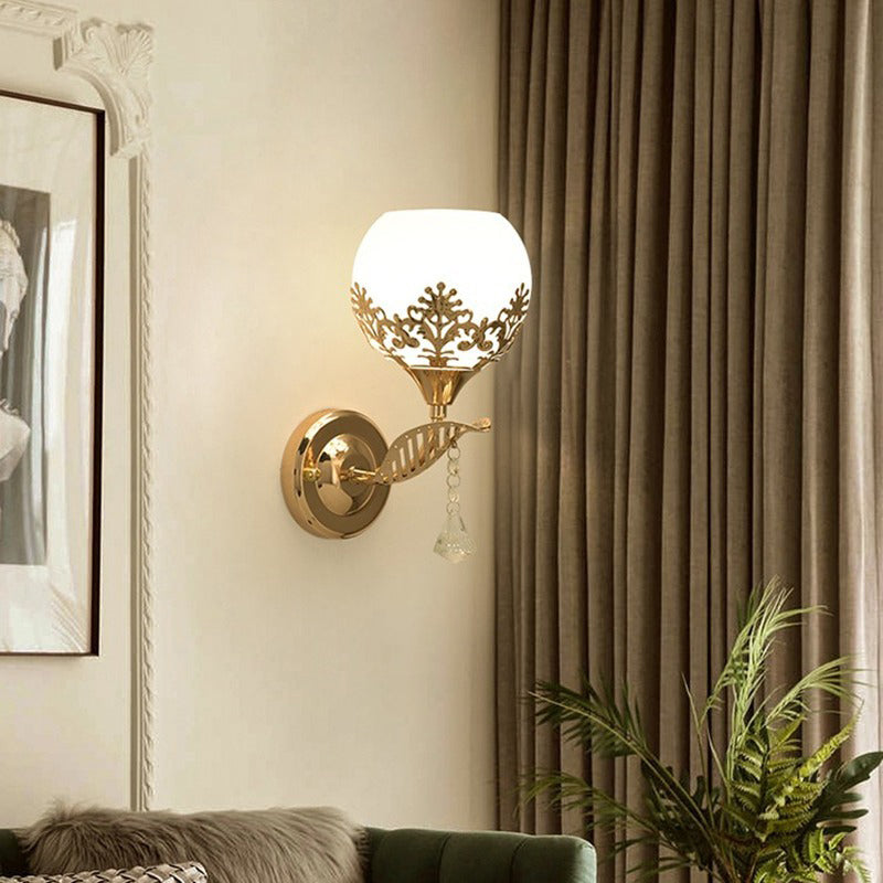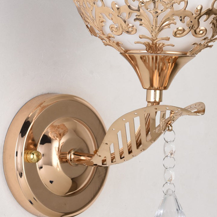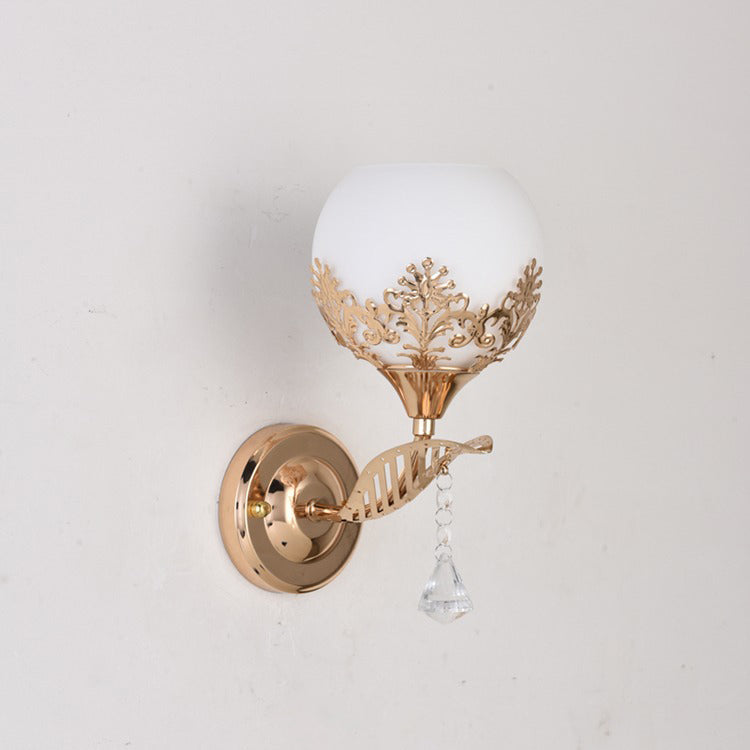 Modern Minimalist Round Flower Iron Glass 1-Light Wall Sconce Lamp For Bedroom