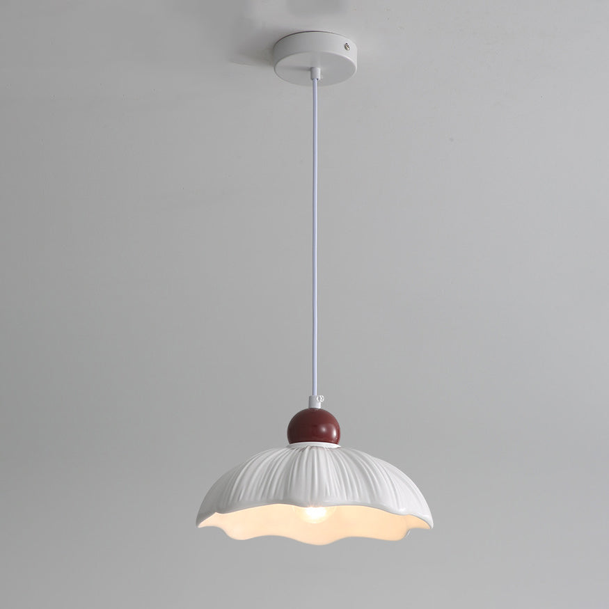 Modern Minimalist Round Flower Resin Shade Hardware Base 1-Light Pendant Light For Bedroom