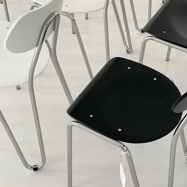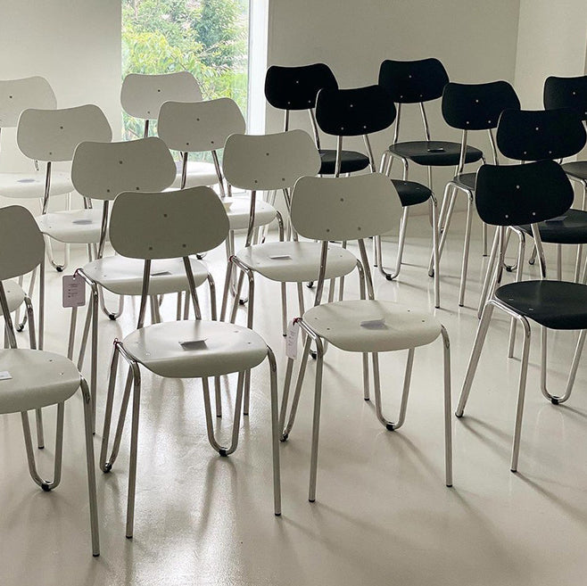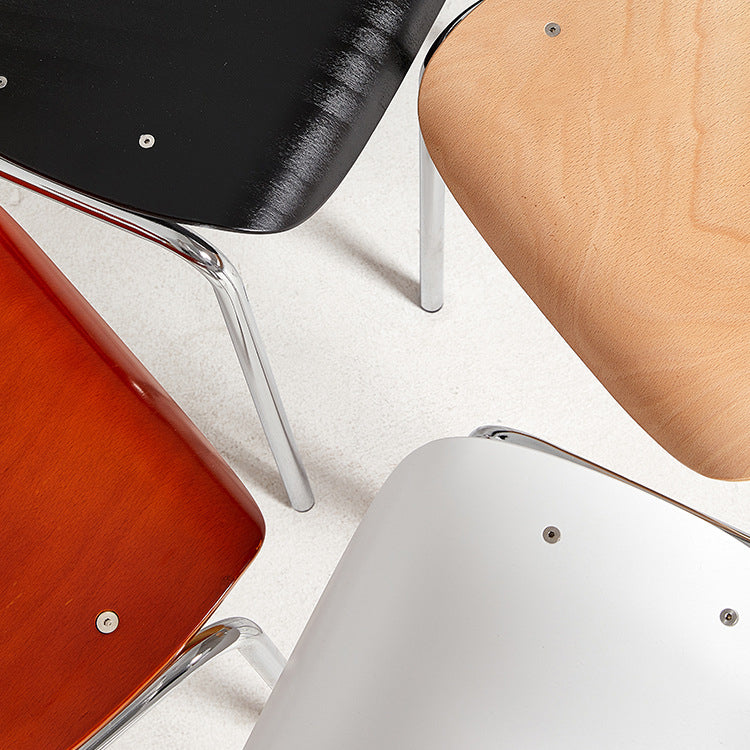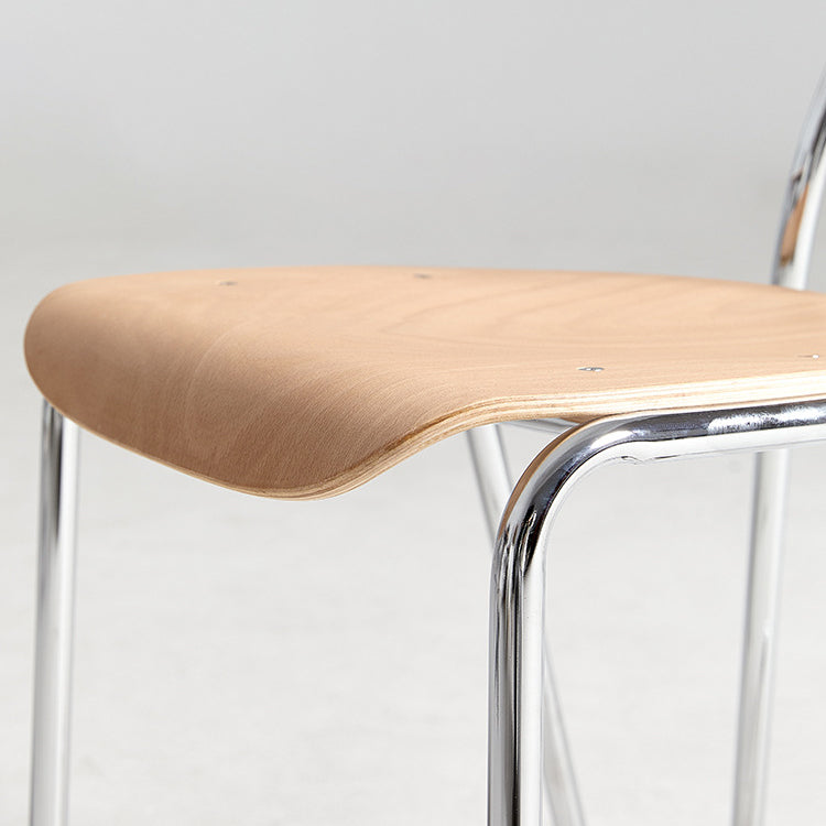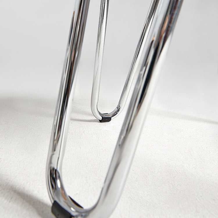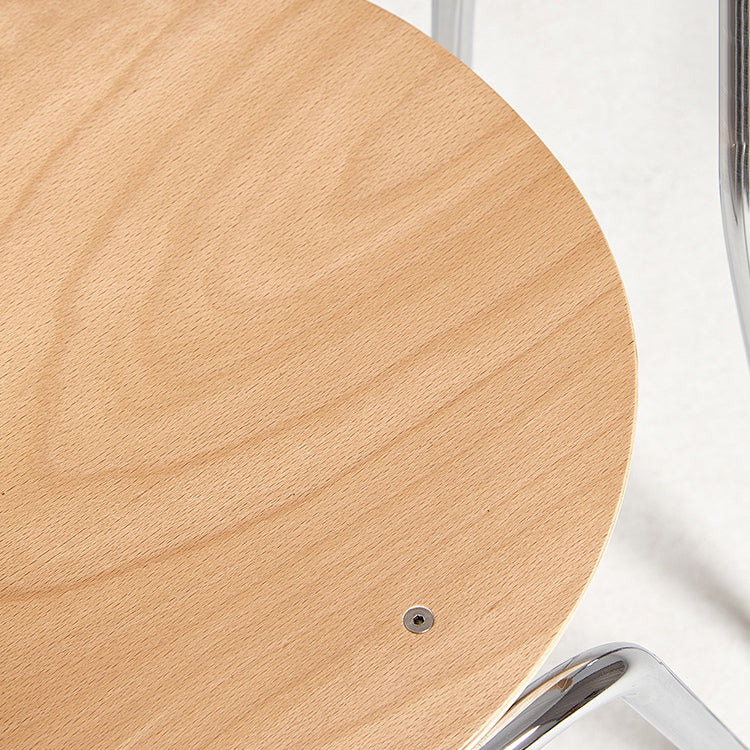 Modern Minimalist Round Geometric Stainless Steel Faux Plank Dining Chair For Dining Room