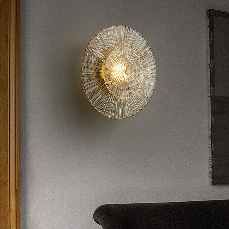 Modern Minimalist Round Glass Copper LED Wall Sconce Lamp For Living Room