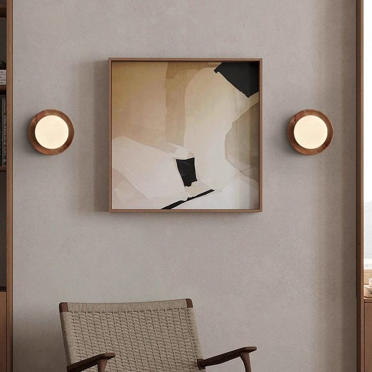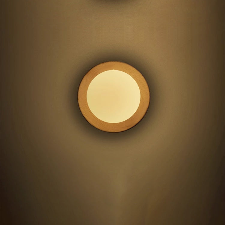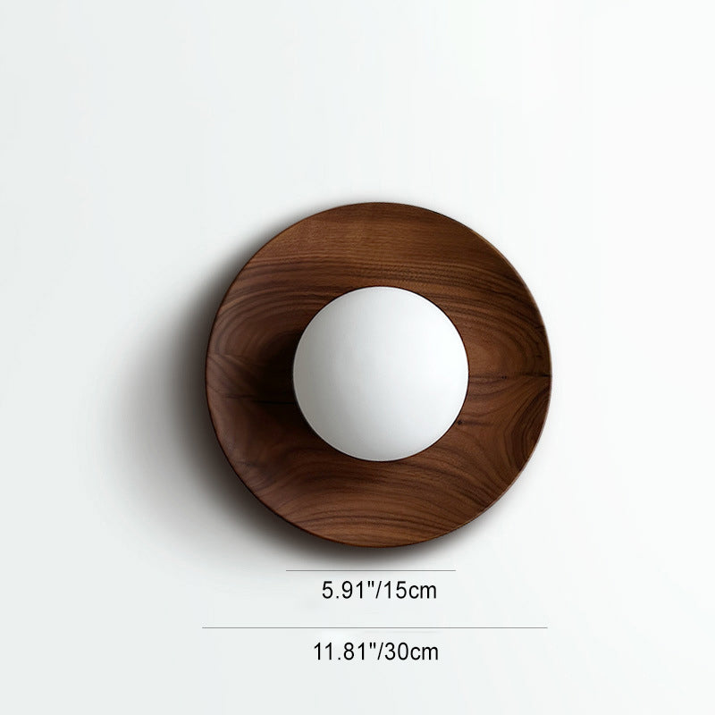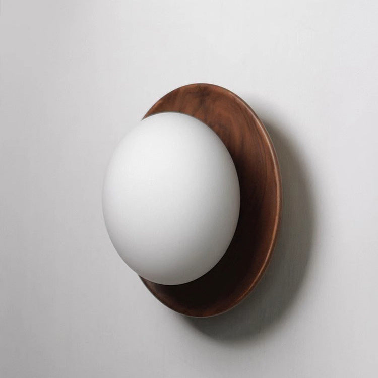 Modern Minimalist Round Glass Wood 1-Light Wall Sconce Lamp For Bedroom