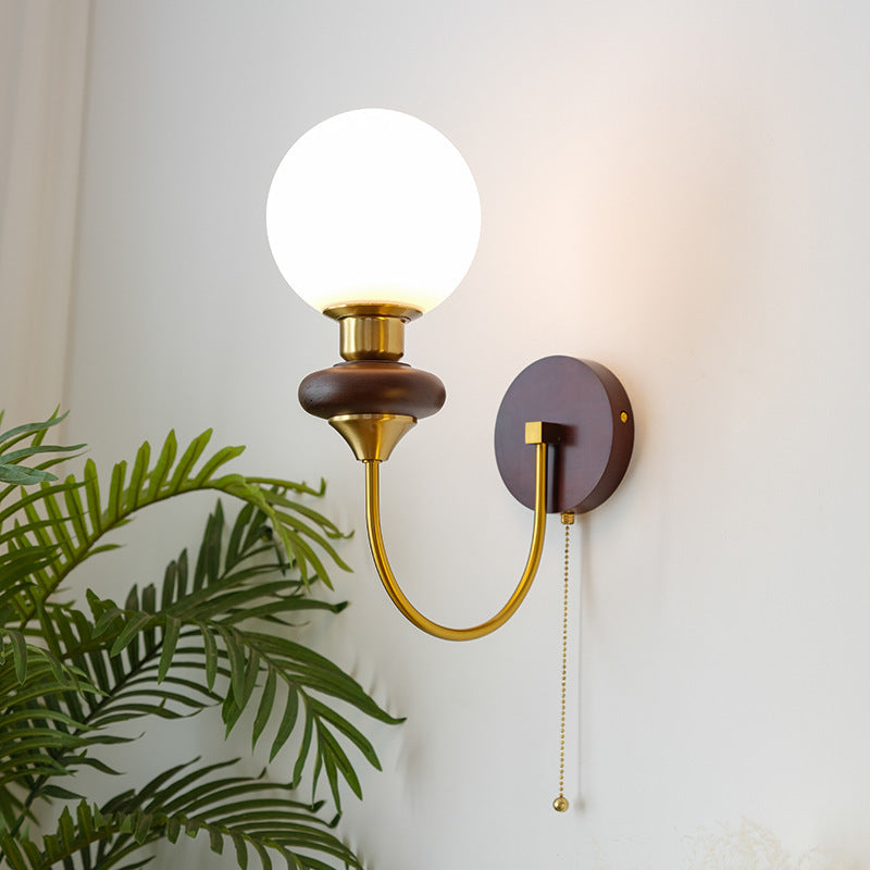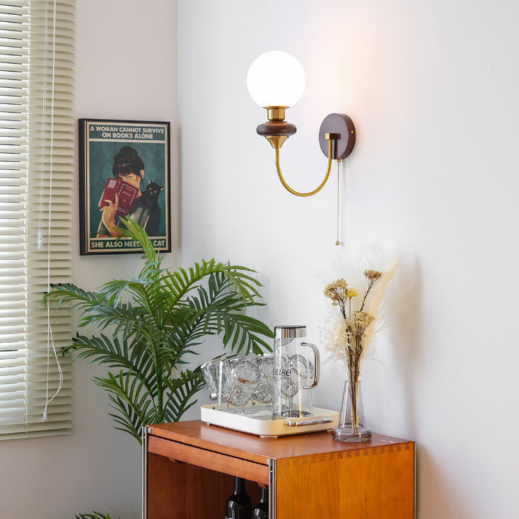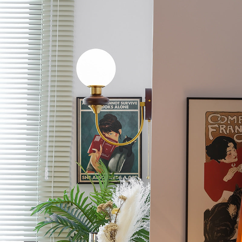 Modern Minimalist Round Globe Iron Glass 1-Light Wall Sconce Lamp For Bedroom