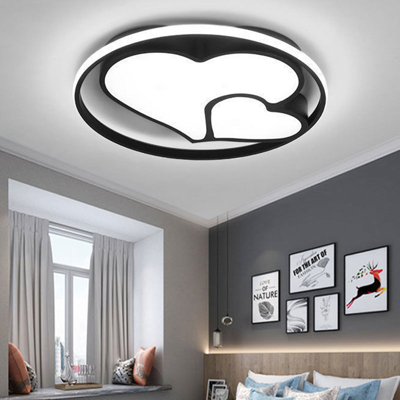 Modern Minimalist Round Heart Circle Acrylic Iron LED Flush Mount Ceiling Light For Bedroom