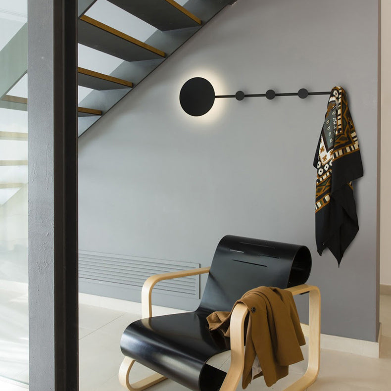 Modern Minimalist Round Long Coat Rack Shelf Iron LED Wall Sconce Lamp For Bedroom