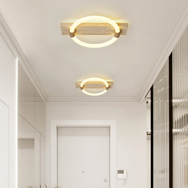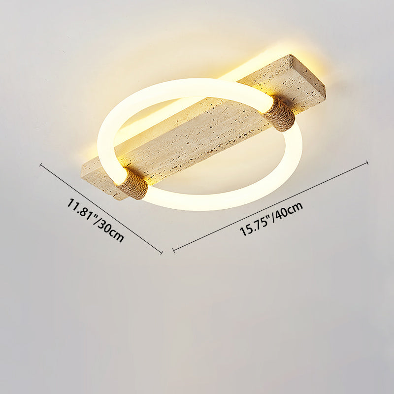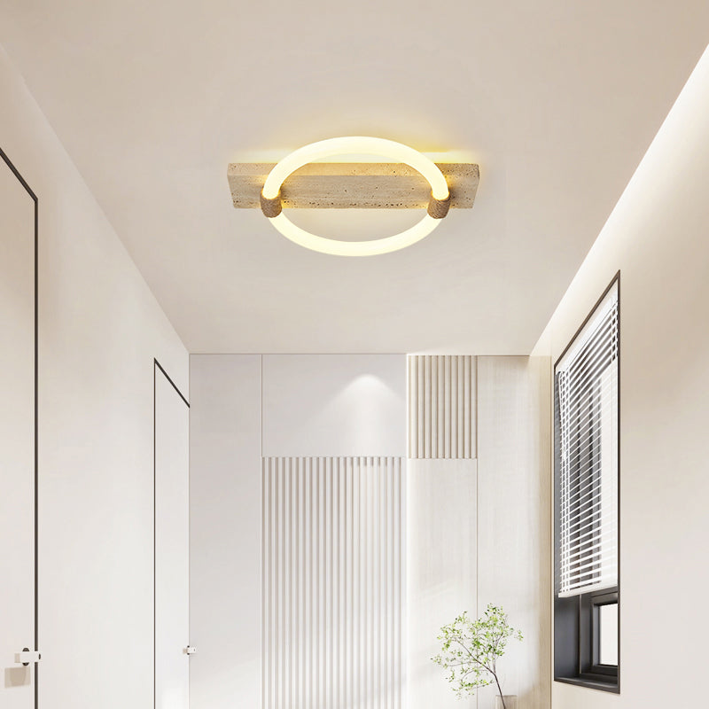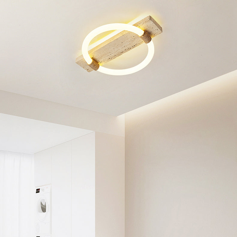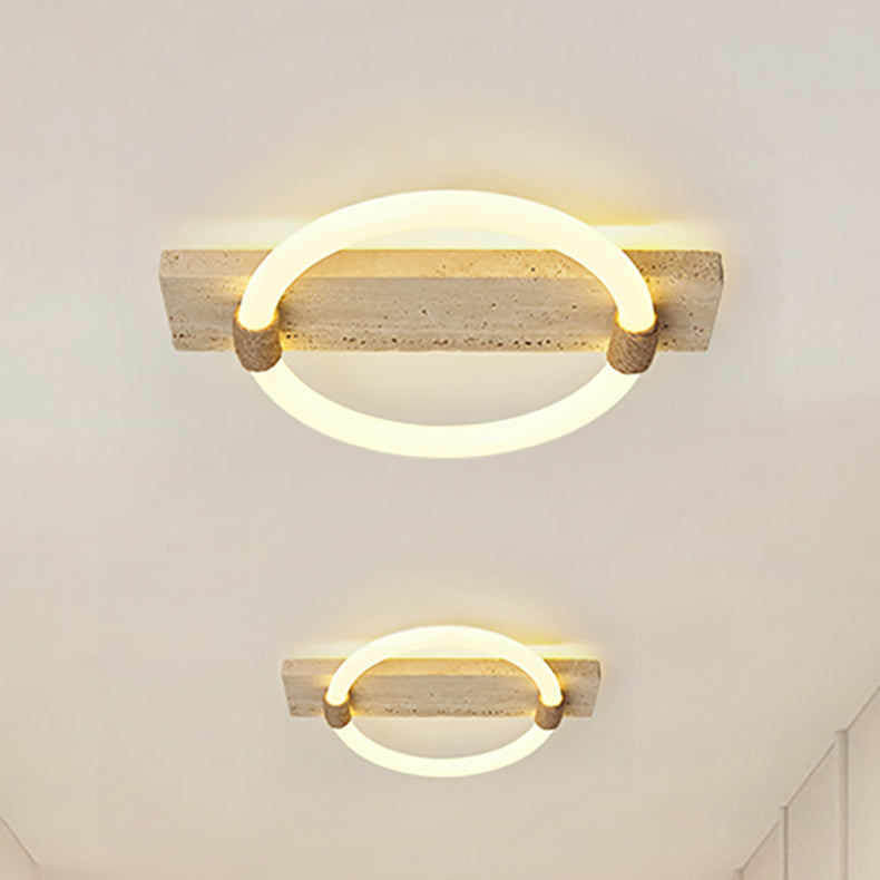 Modern Minimalist Round Rectangle White Travertine Acrylic LED Flush Mount Ceiling Light For Living Room