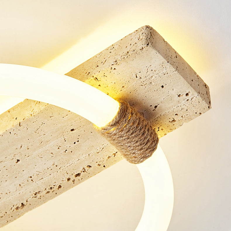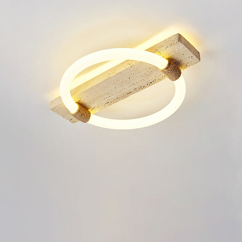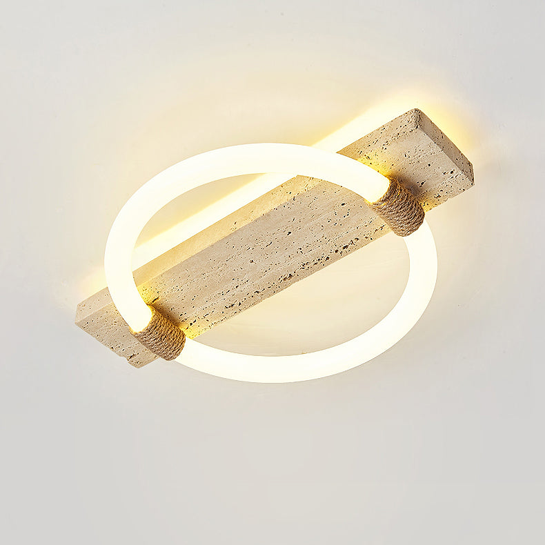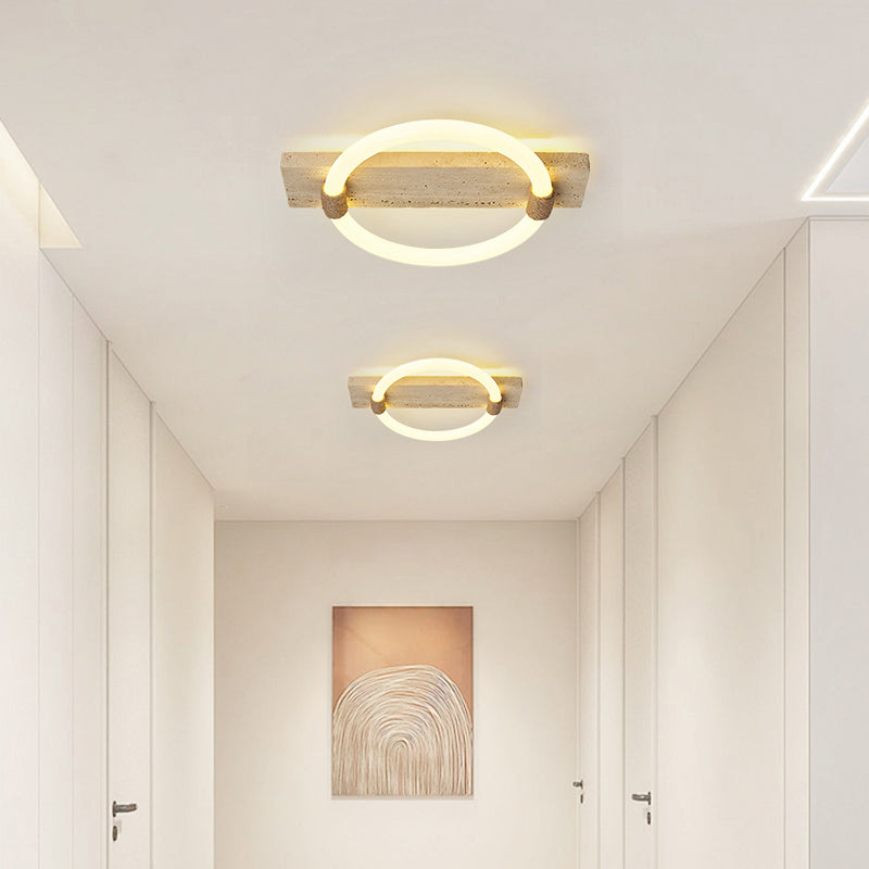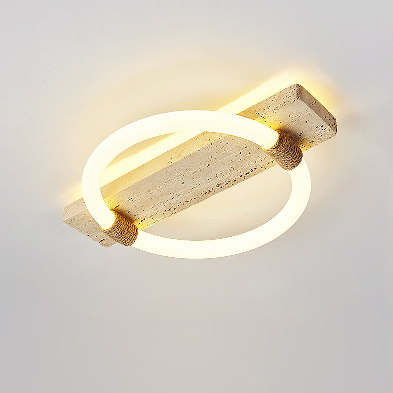 Modern Minimalist Round Rectangle White Travertine Acrylic LED Flush Mount Ceiling Light For Living Room