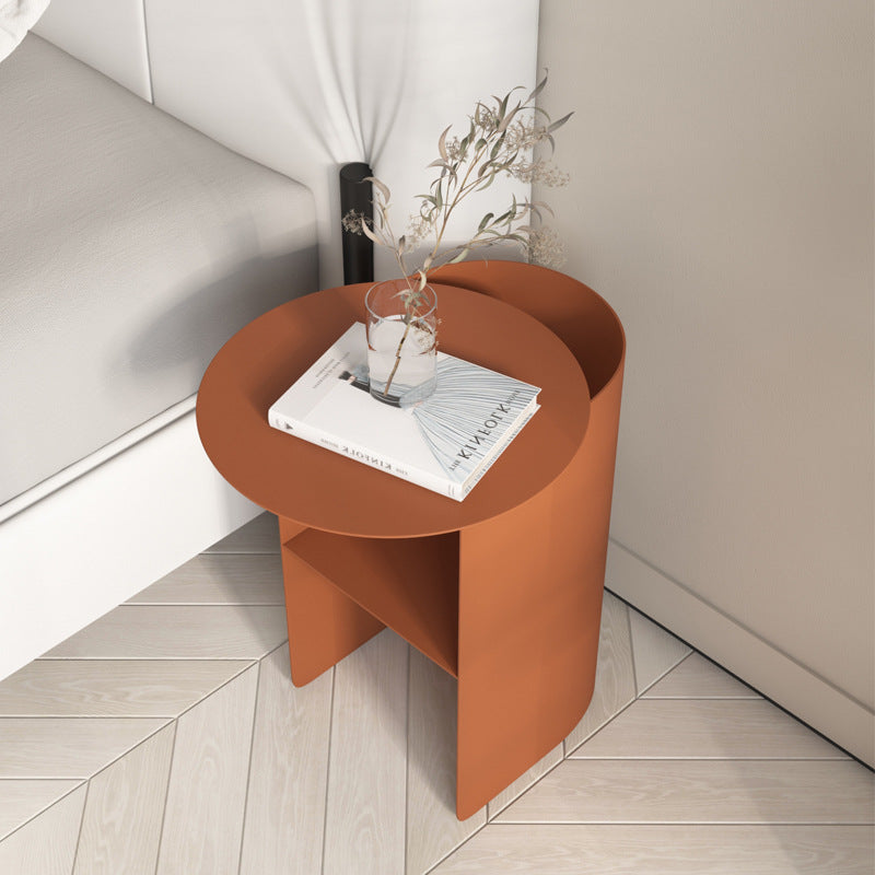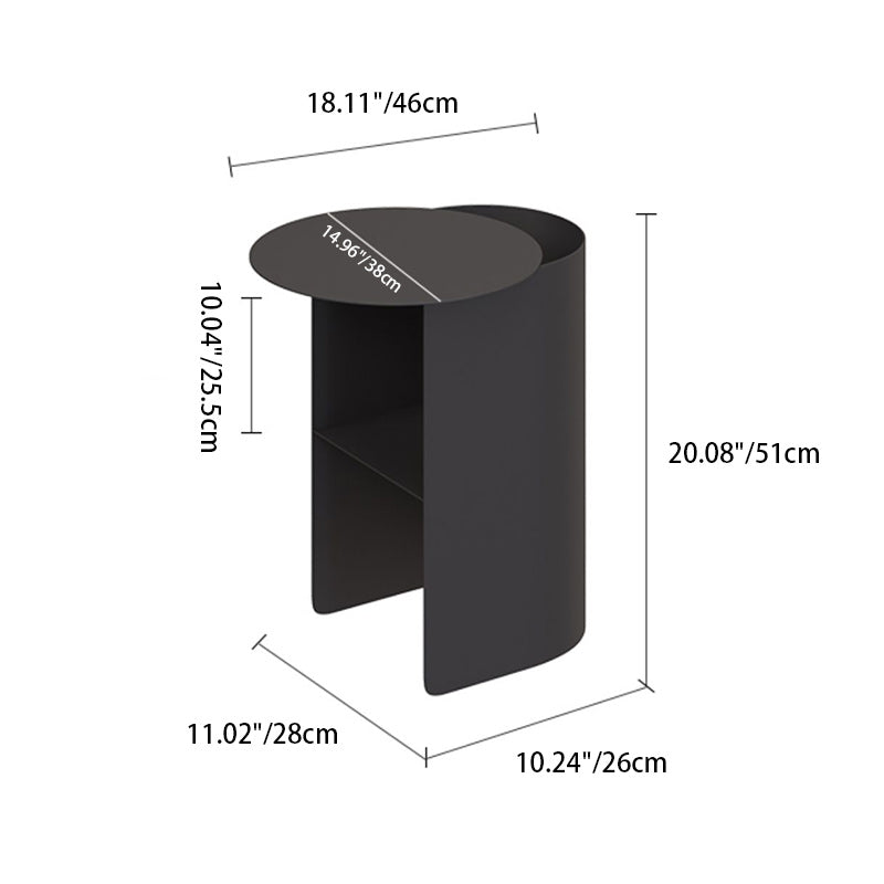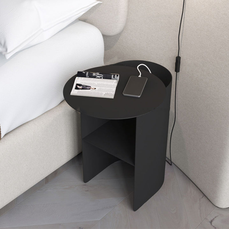 Modern Minimalist Round Rectangular Iron Nightstand 2-Tier For Bedroom