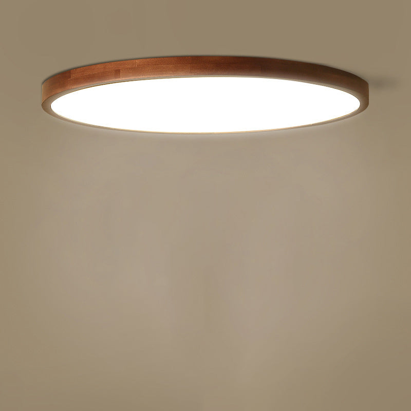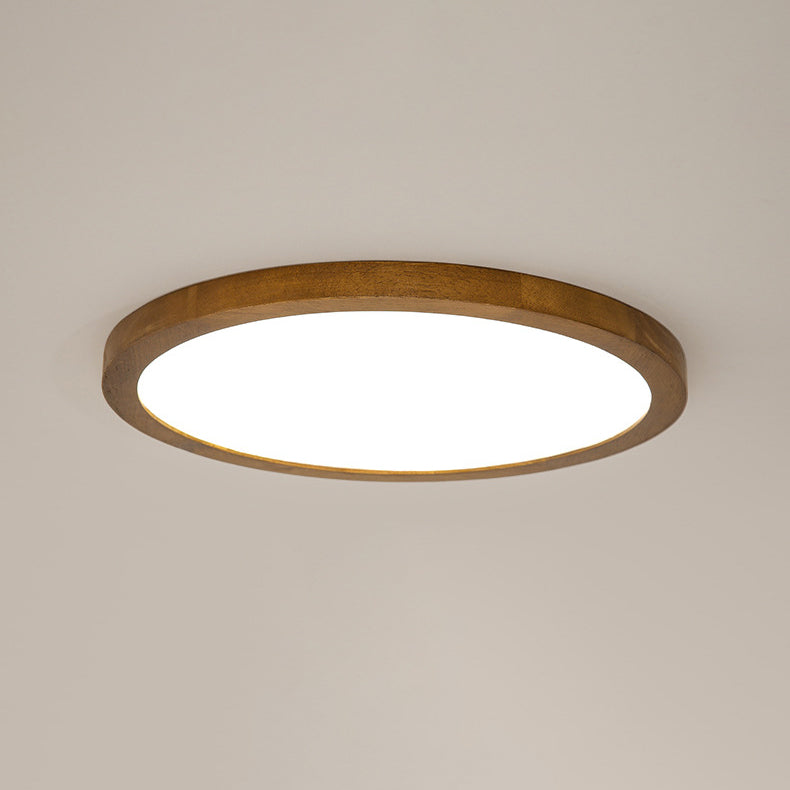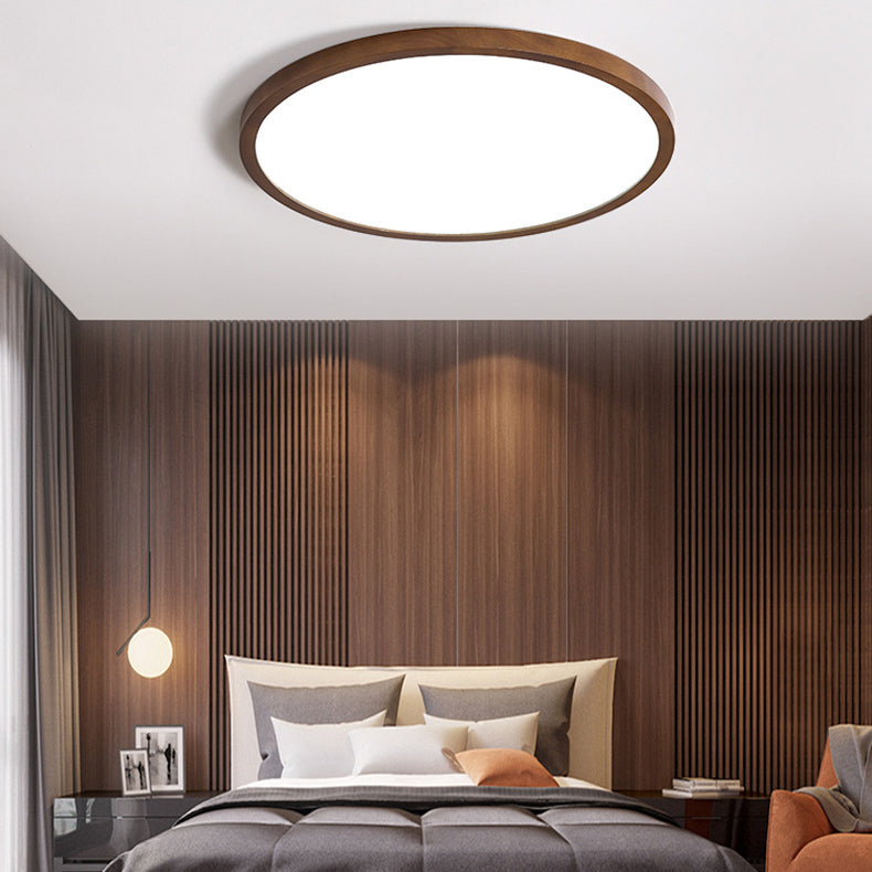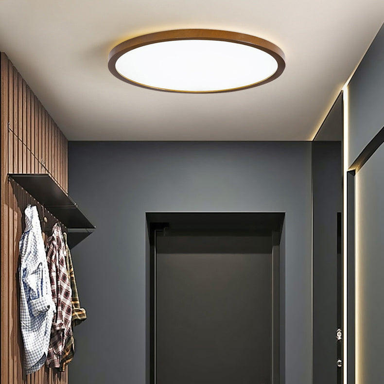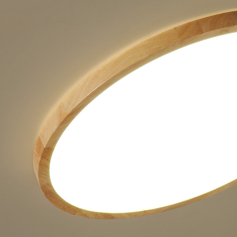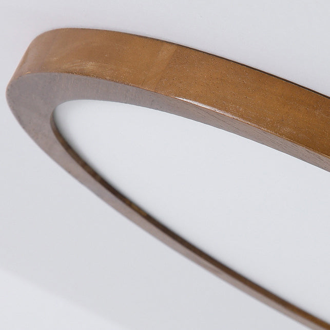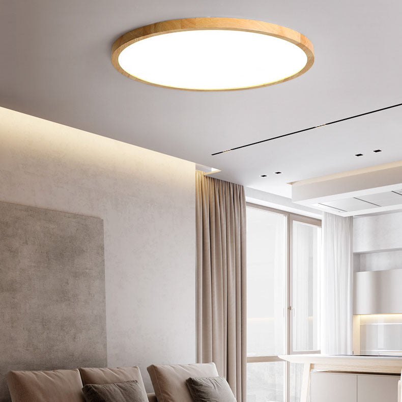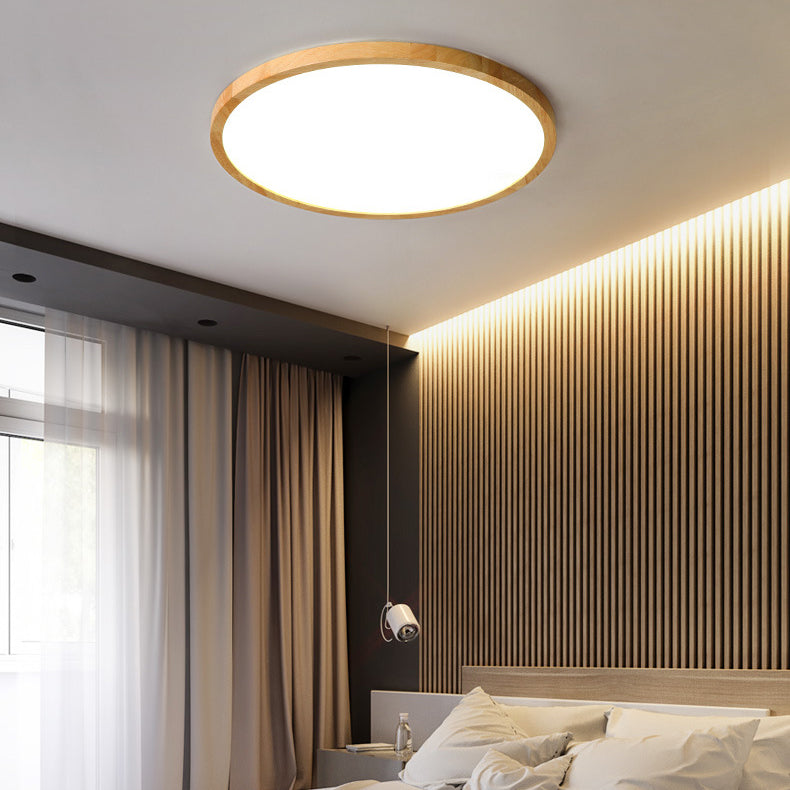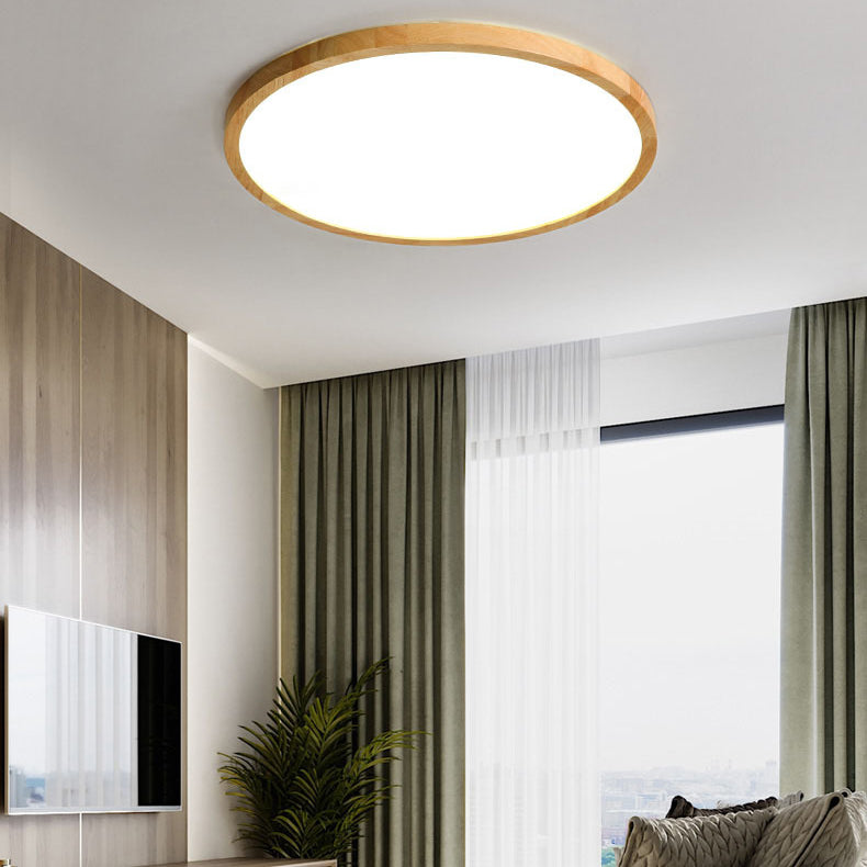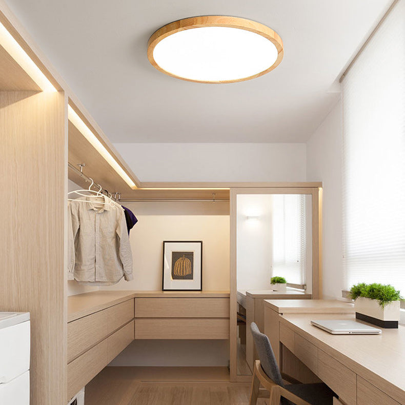 Modern Minimalist Round Solid Wood Frame Acrylic Shade LED Flush Mount Ceiling Light For Living Room