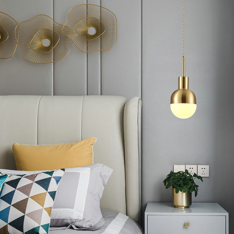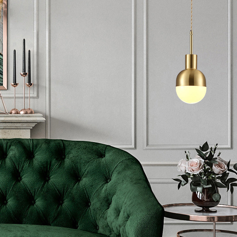 Modern Minimalist Round Spherical Copper Glass 1-Light Pendant Light For Living Room
