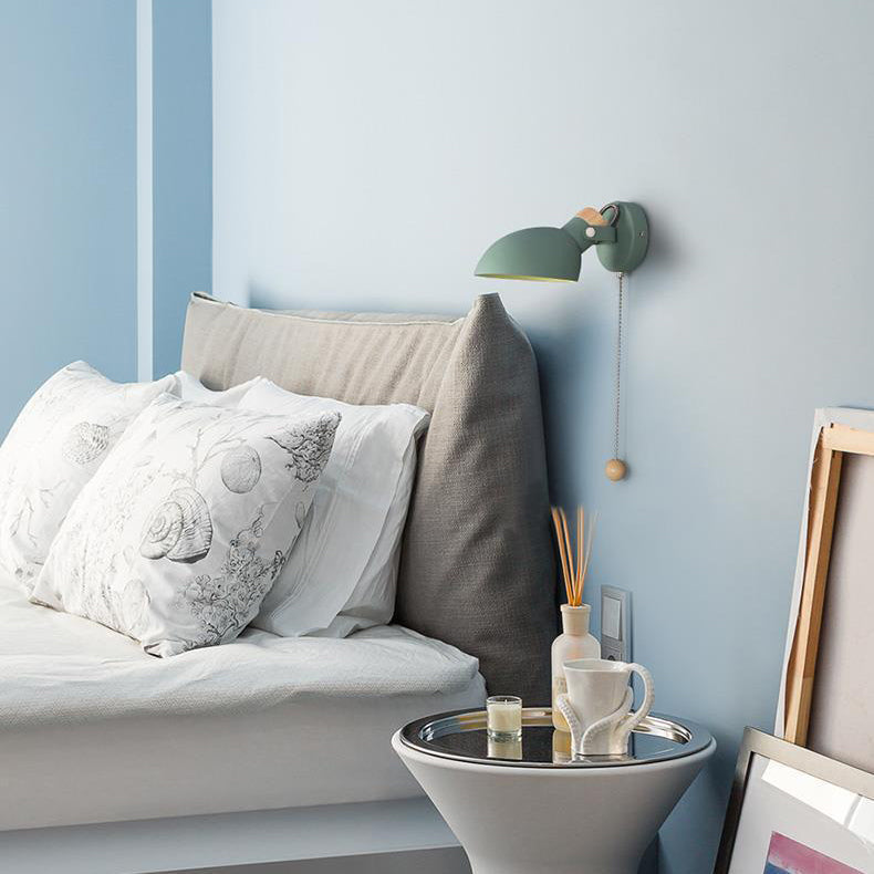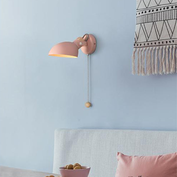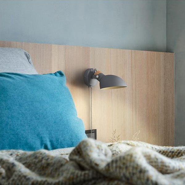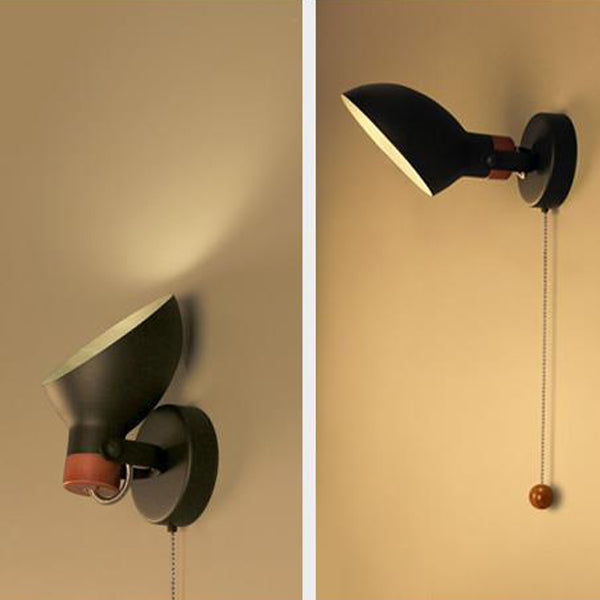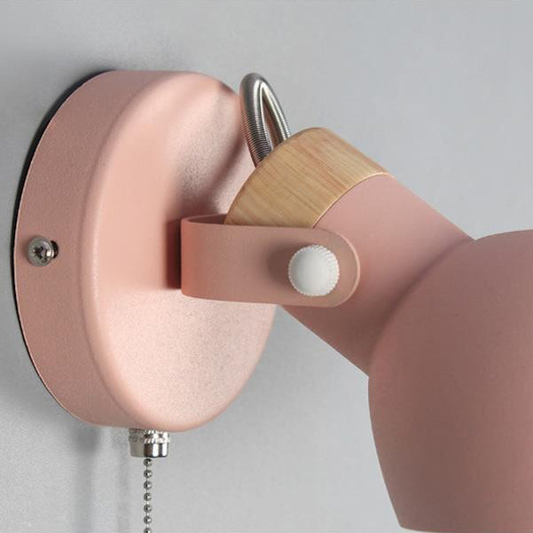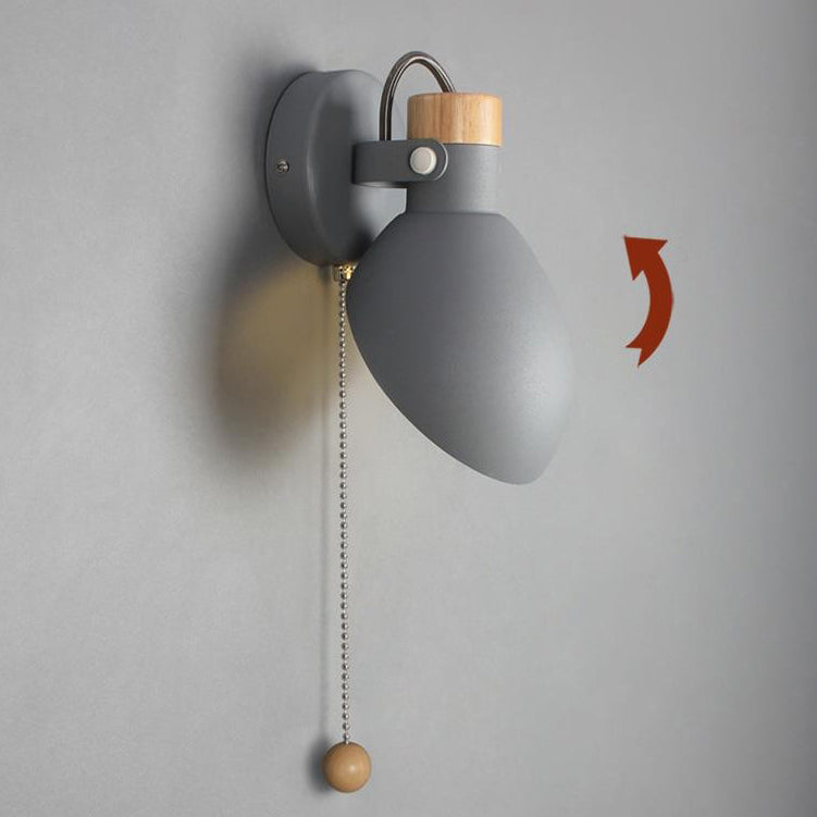 Modern Minimalist Round Spoon Shape Metal Wood 1-Light Wall Sconce Lamp For Bedroom