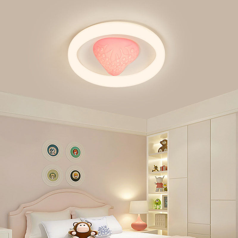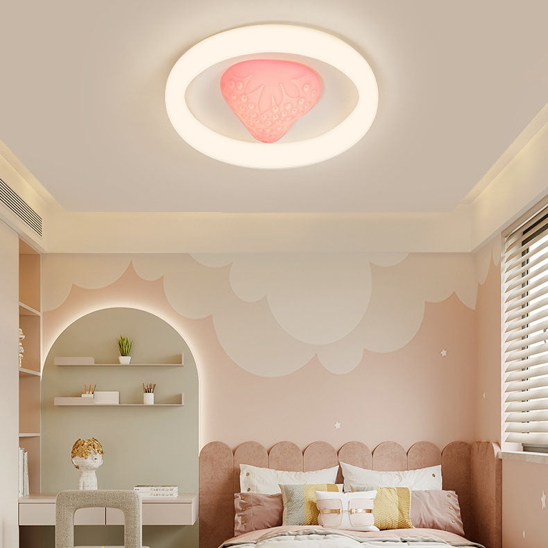 Modern Minimalist Round Strawberry Iron Acrylic LED Flush Mount Ceiling Light For Bedroom
