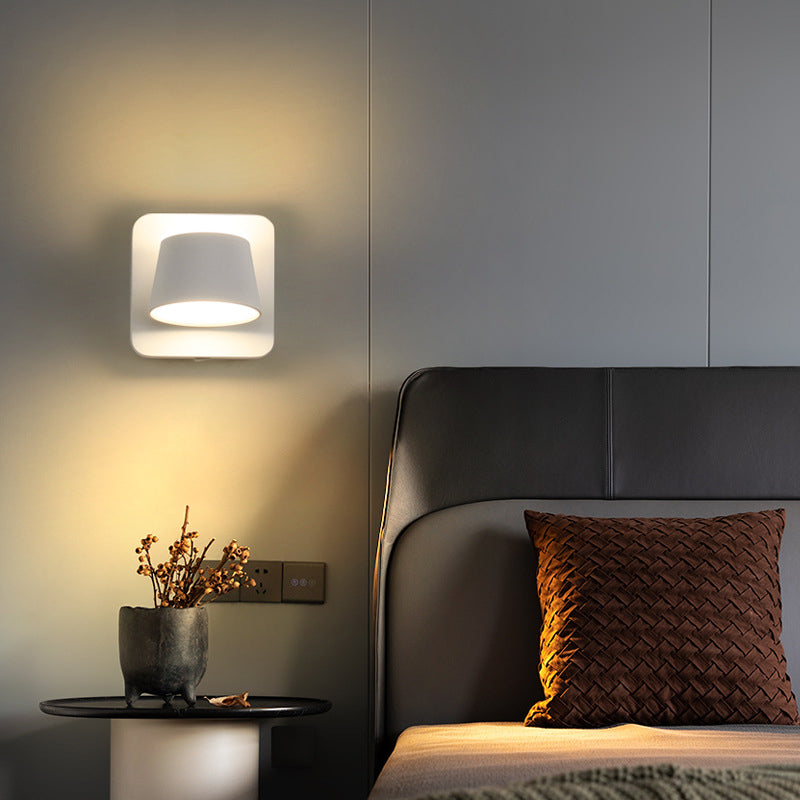 Modern Minimalist Round Table Square Base Iron Aluminum PS LED Wall Sconce Lamp For Bedroom