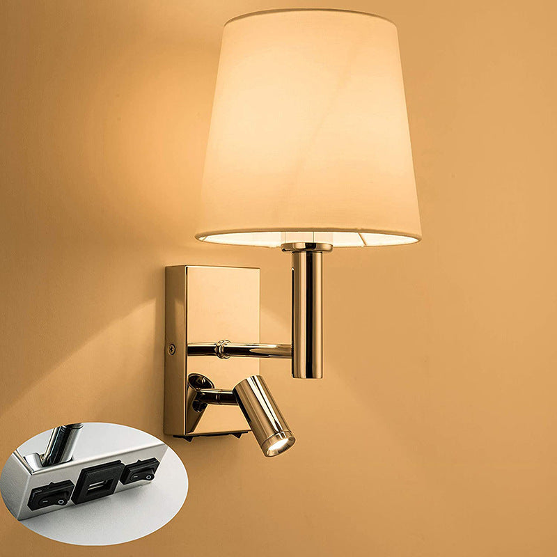 Modern Minimalist Round Trapezoidal Iron Fabric 1-Light Wall Sconce Lamp For Living Room