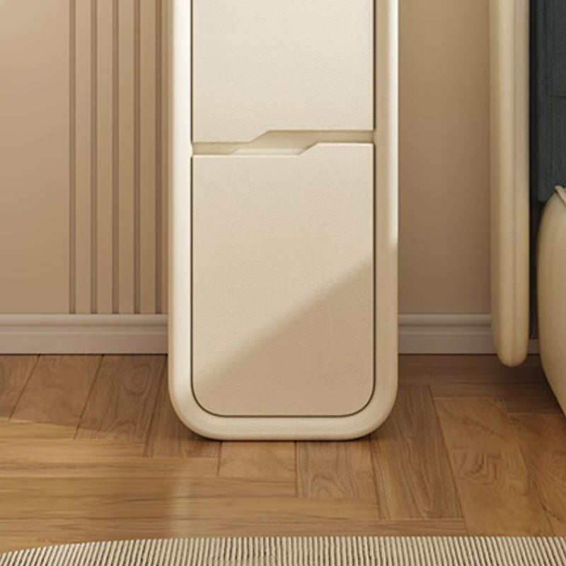 Modern Minimalist Rounded Corner Rectangular Leather Wood Metal Nightstand 2-Drawer For Bedroom